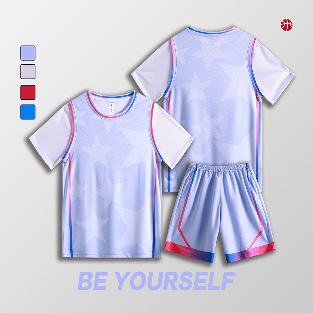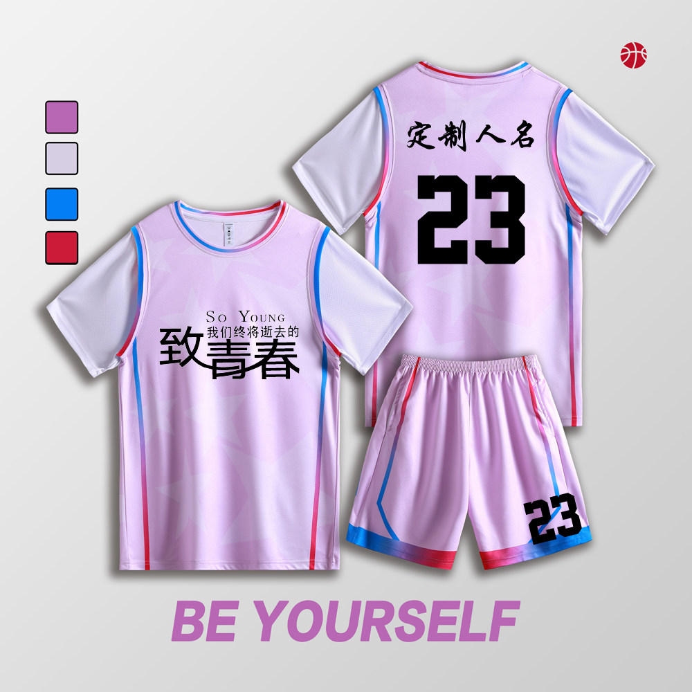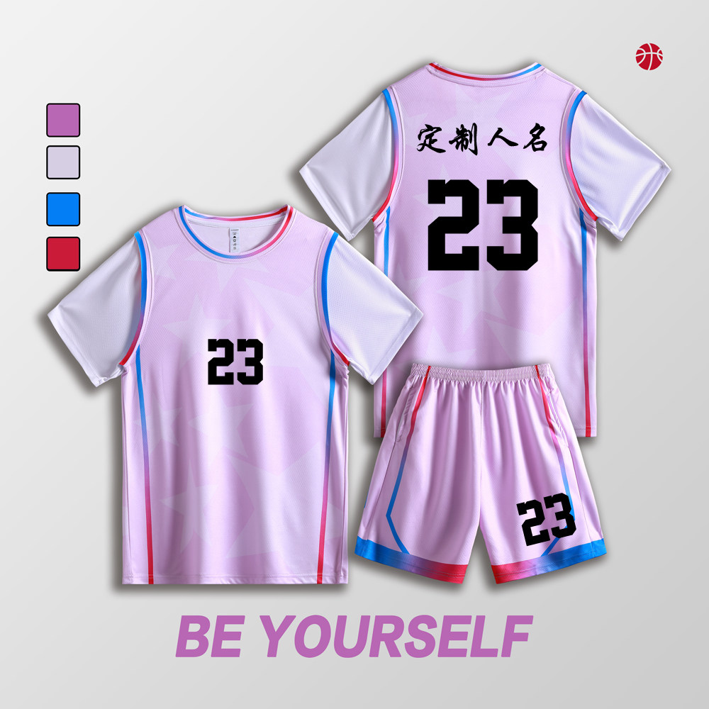 女款女生女童学生假两件短袖篮球服运动健身套装定制印刷B008粉色