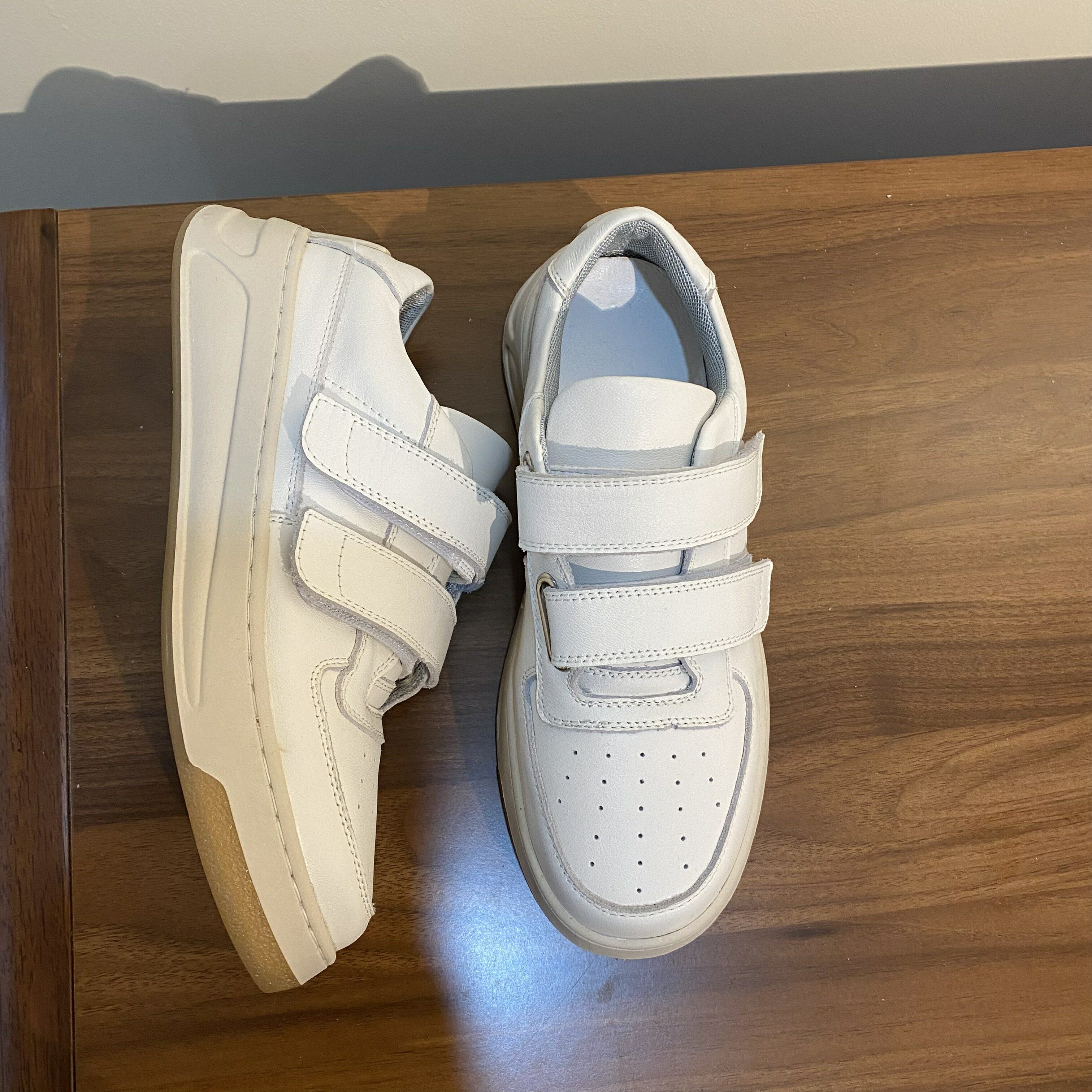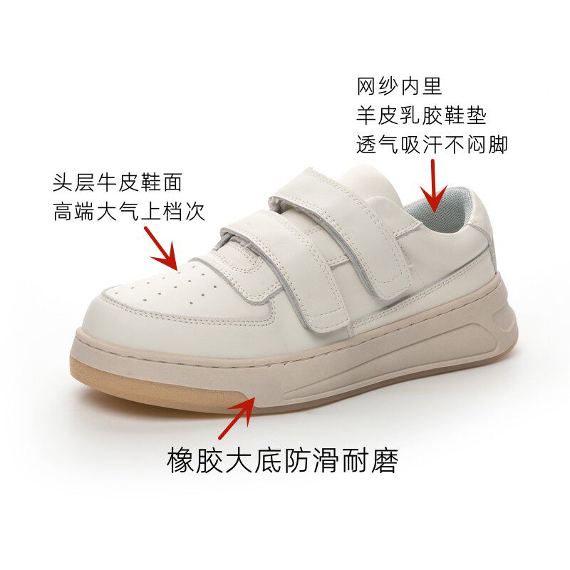 欧货笑脸魔术贴小白鞋真皮透气耐磨防滑厚底休闲板鞋经典百搭女鞋