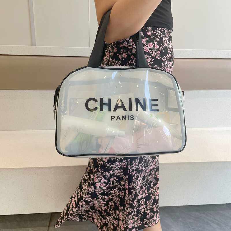 日韩新款化妆包透明大容量洗漱用品收纳沐浴健身房旅行收纳手提袋