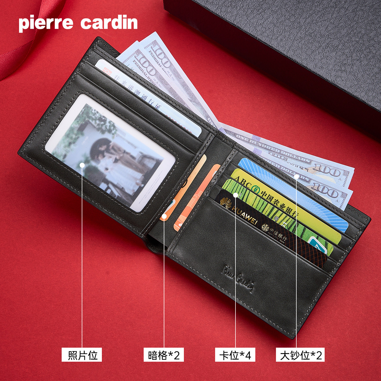 皮尔卡丹皮尔卡丹正品真皮钱包男士短款商务多功能便携卡包送男友