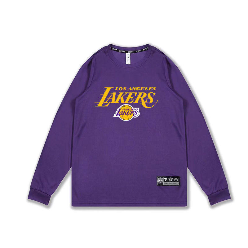 美式训练服长袖速干t恤湖人库里掘金骑士儿童热身投篮服圆领薄款