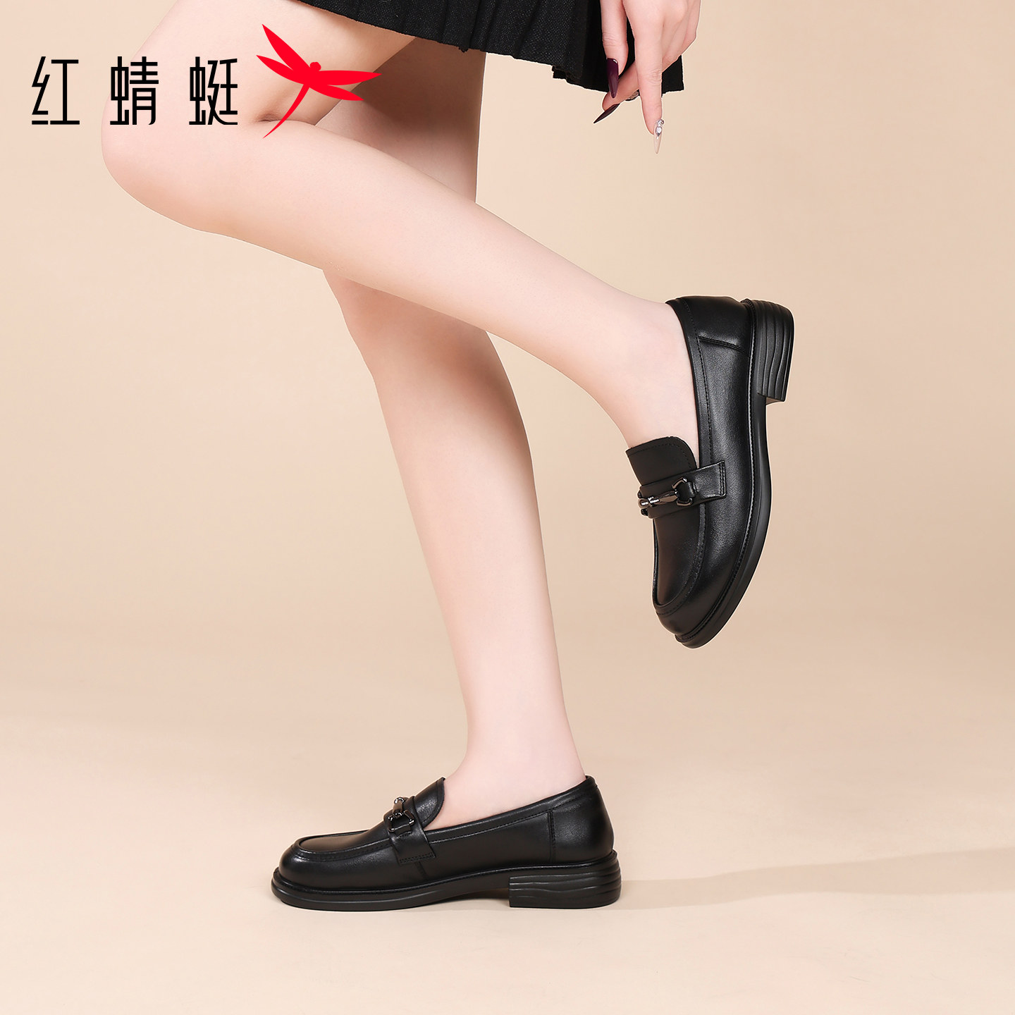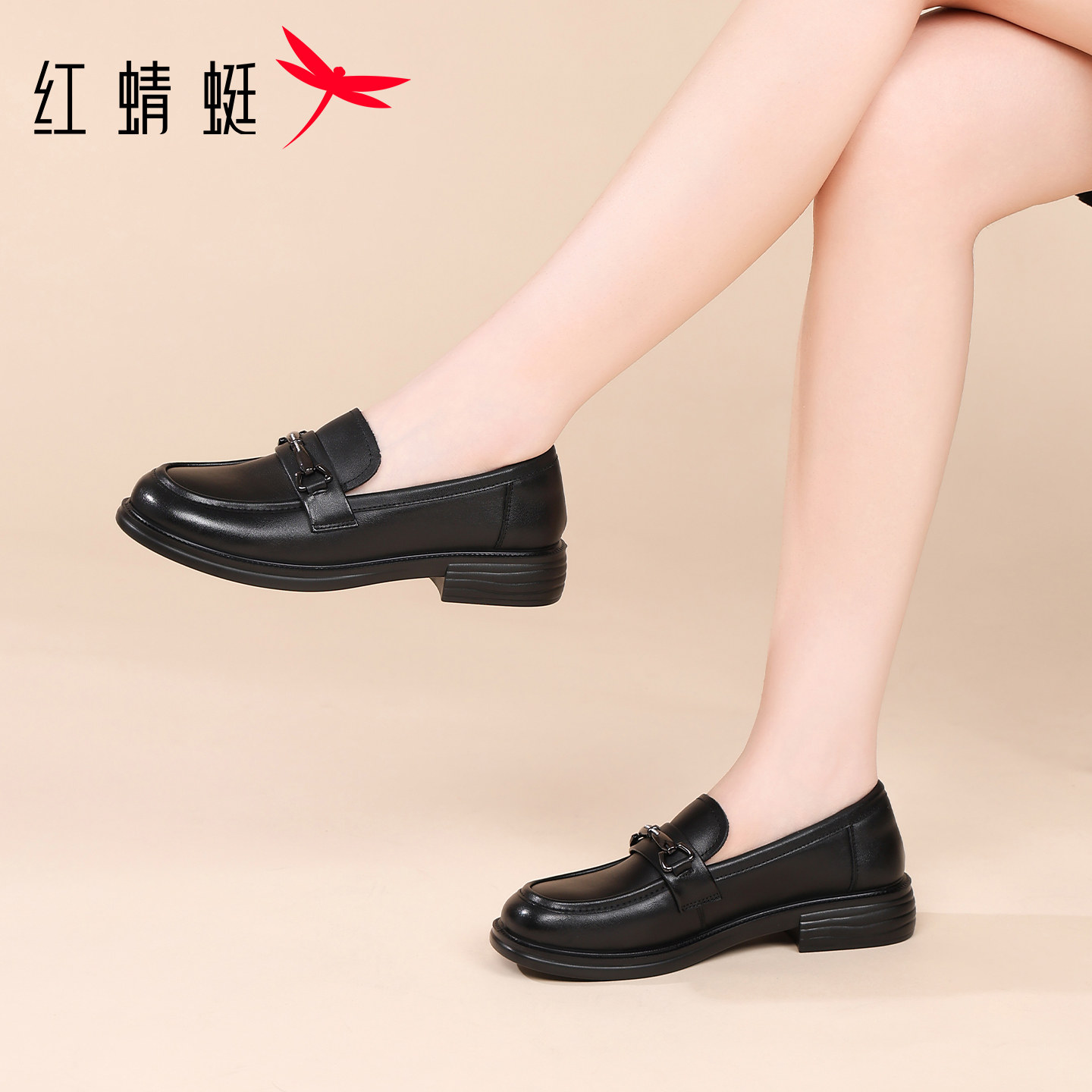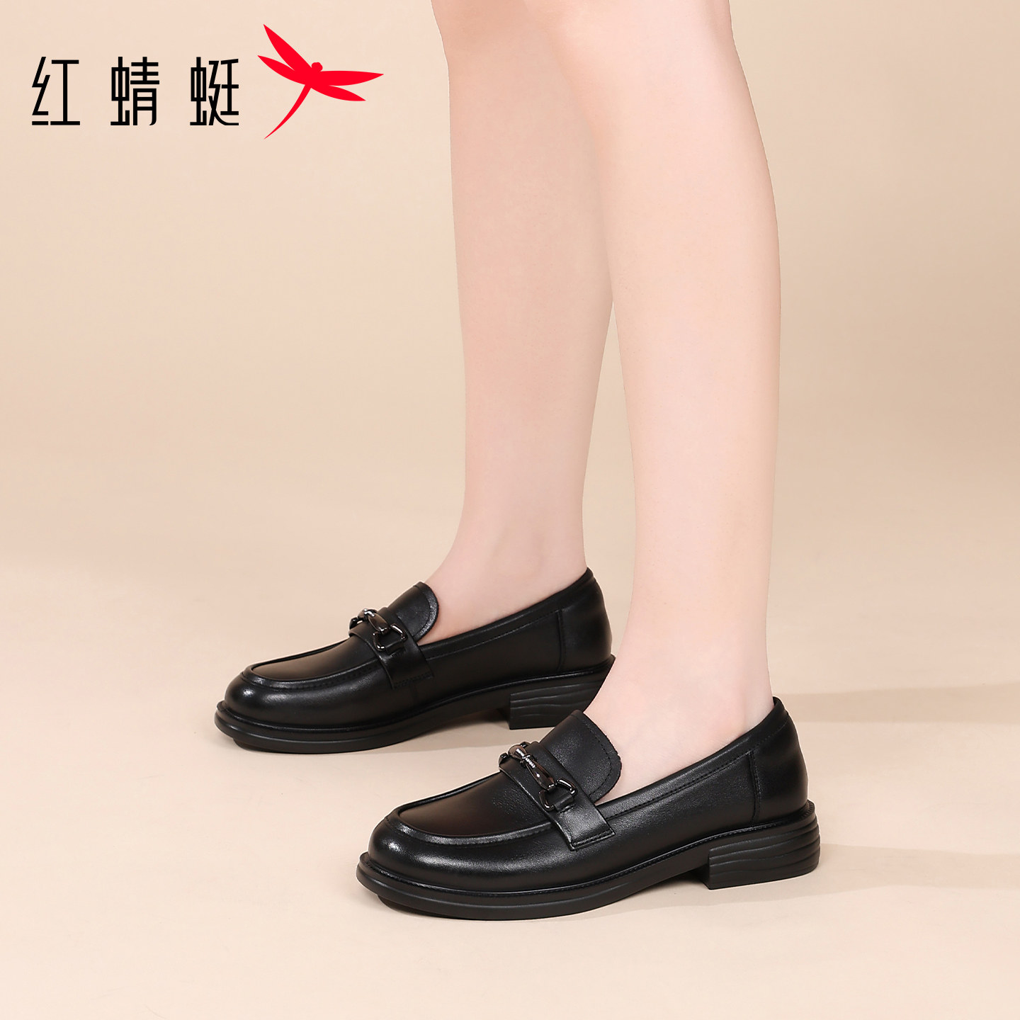 311线报网描述:红蜻蜓厚底休闲皮鞋女款乐福鞋真皮英伦
