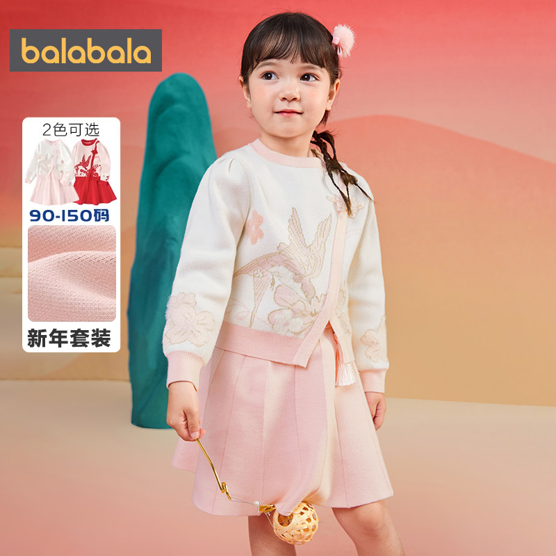 巴拉巴拉女童拜年服套装宝宝裙子两件套秋冬季款童装儿童国风红色