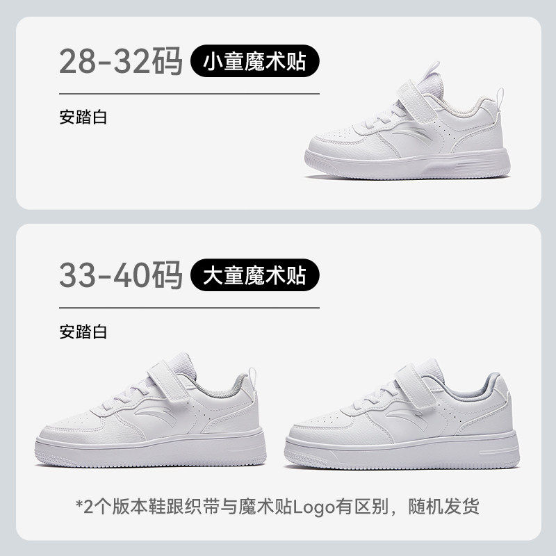 安踏儿童小白鞋板鞋男童女童鞋子春夏学生大童白色休闲运动鞋童鞋