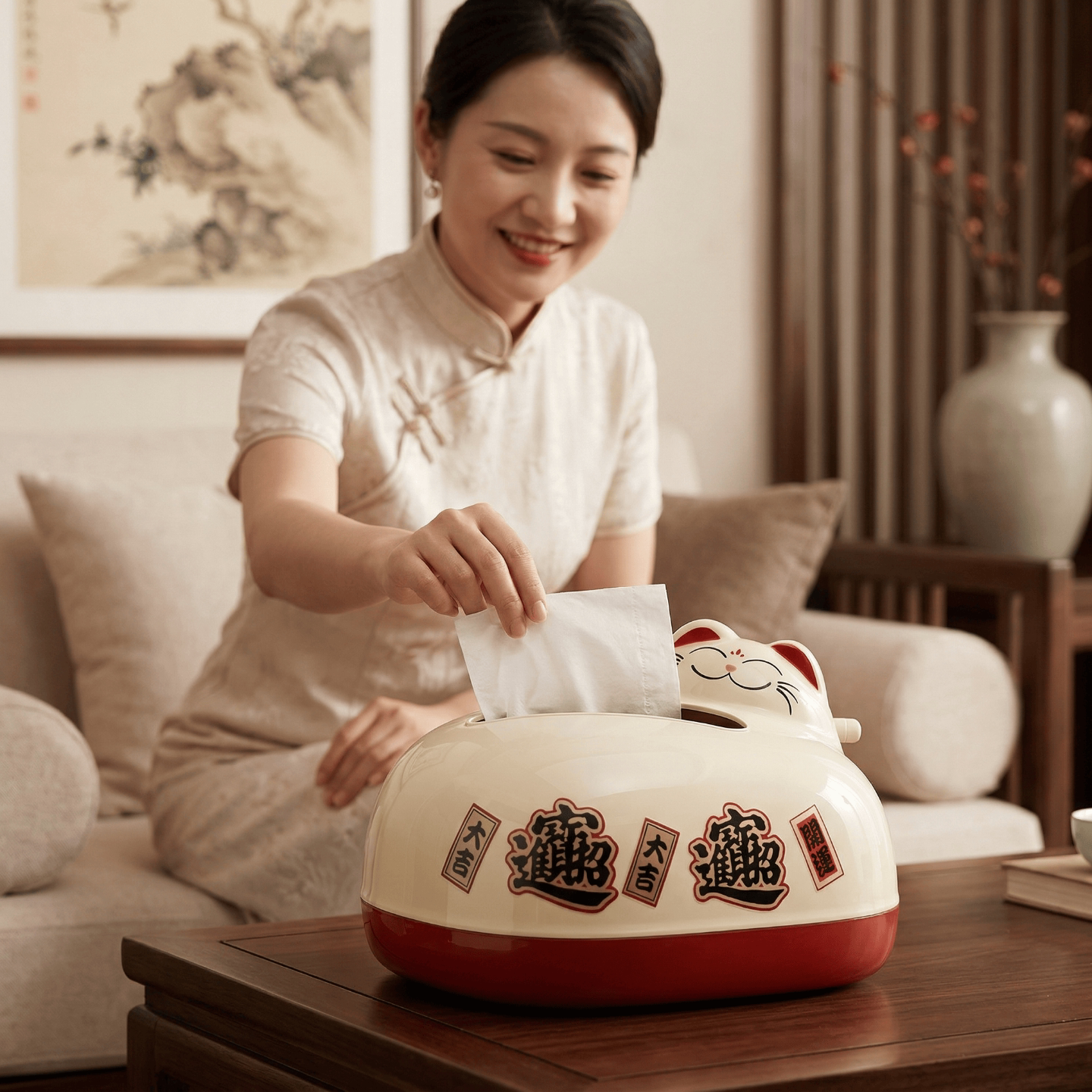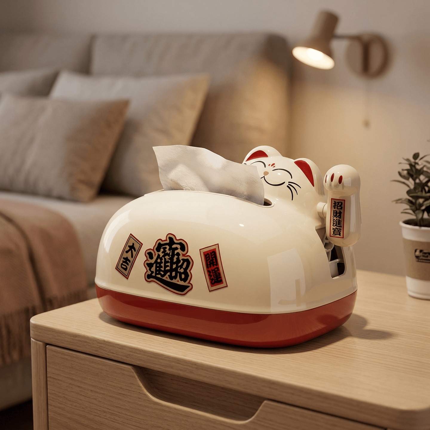 纸巾盒高颜值客厅创意弹簧桌面抽纸盒店铺前台手摇式招财猫纸抽盒