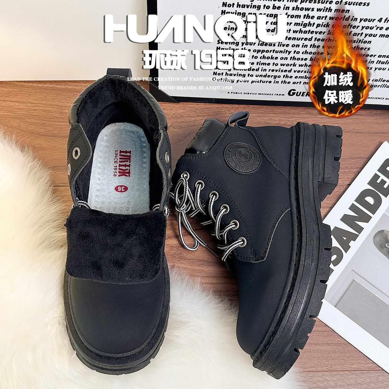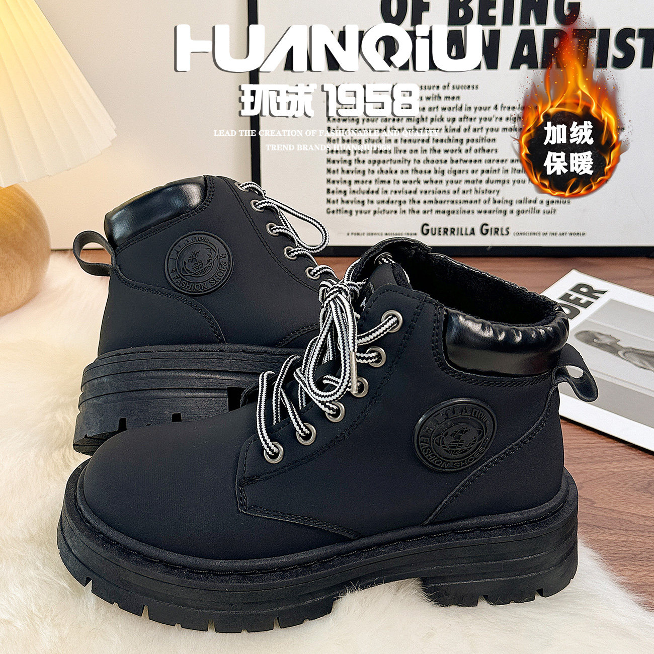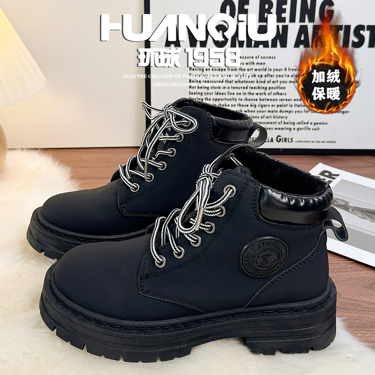 环球加绒英伦风黑色马丁靴女款2026新款秋冬高颜值短靴保暖二棉鞋