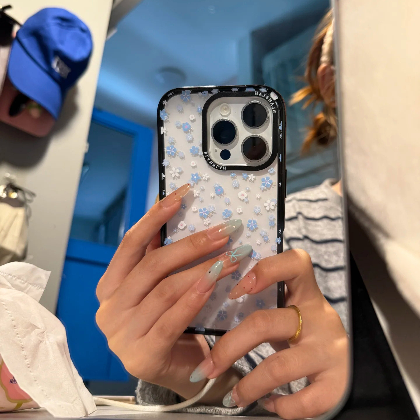 满屏蓝小碎花适用苹果16/17promax手机壳iphone14pro可爱13/14软壳12男女新款16e彩色软边亚克力防摔plus超火
