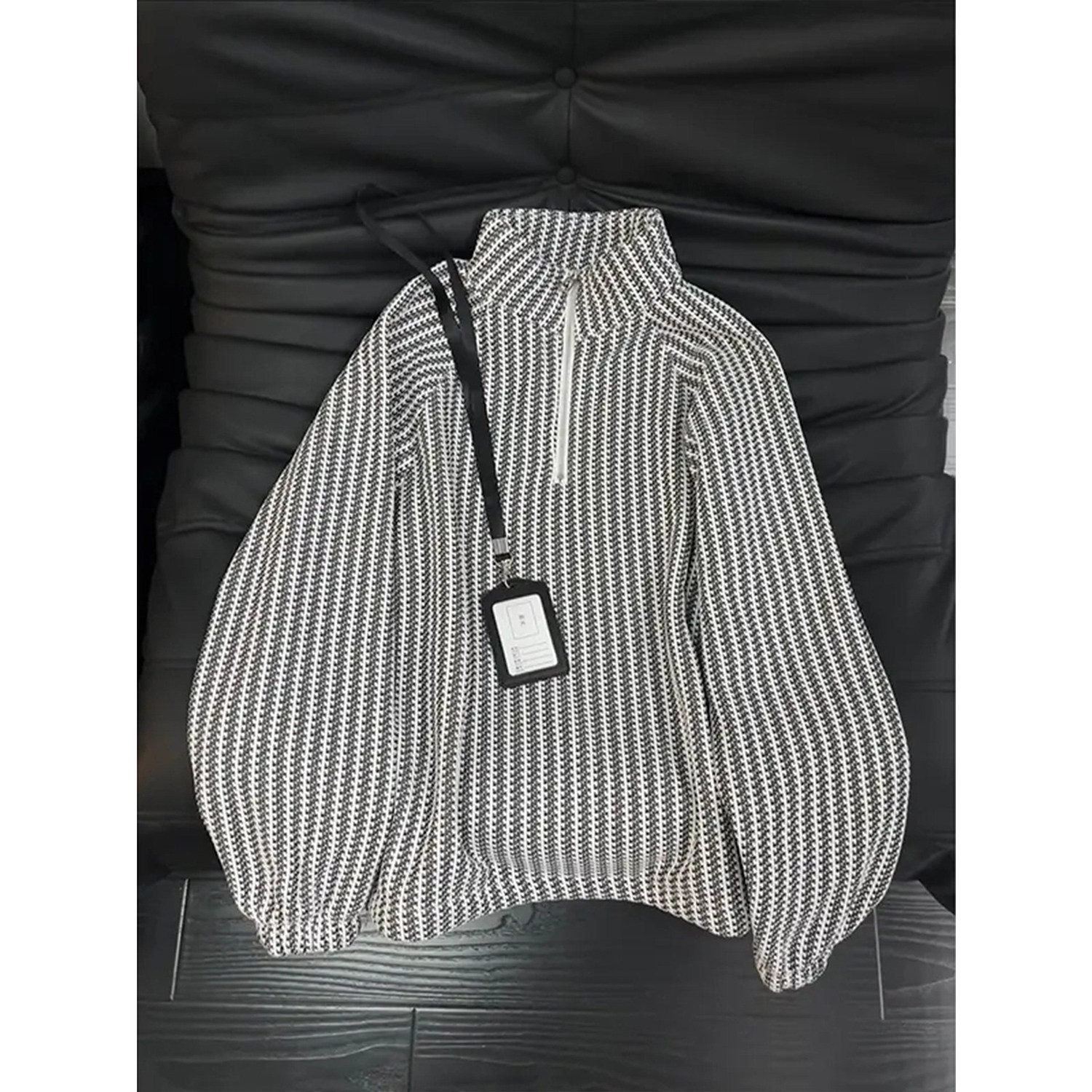 小香风鱼骨纹卫衣男款秋冬加绒加厚半拉链长袖t恤痞帅高级感外套