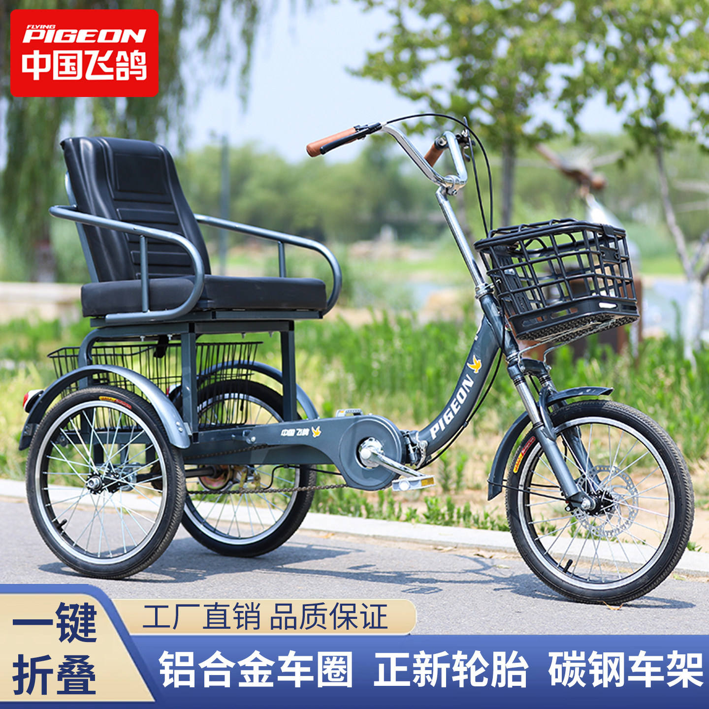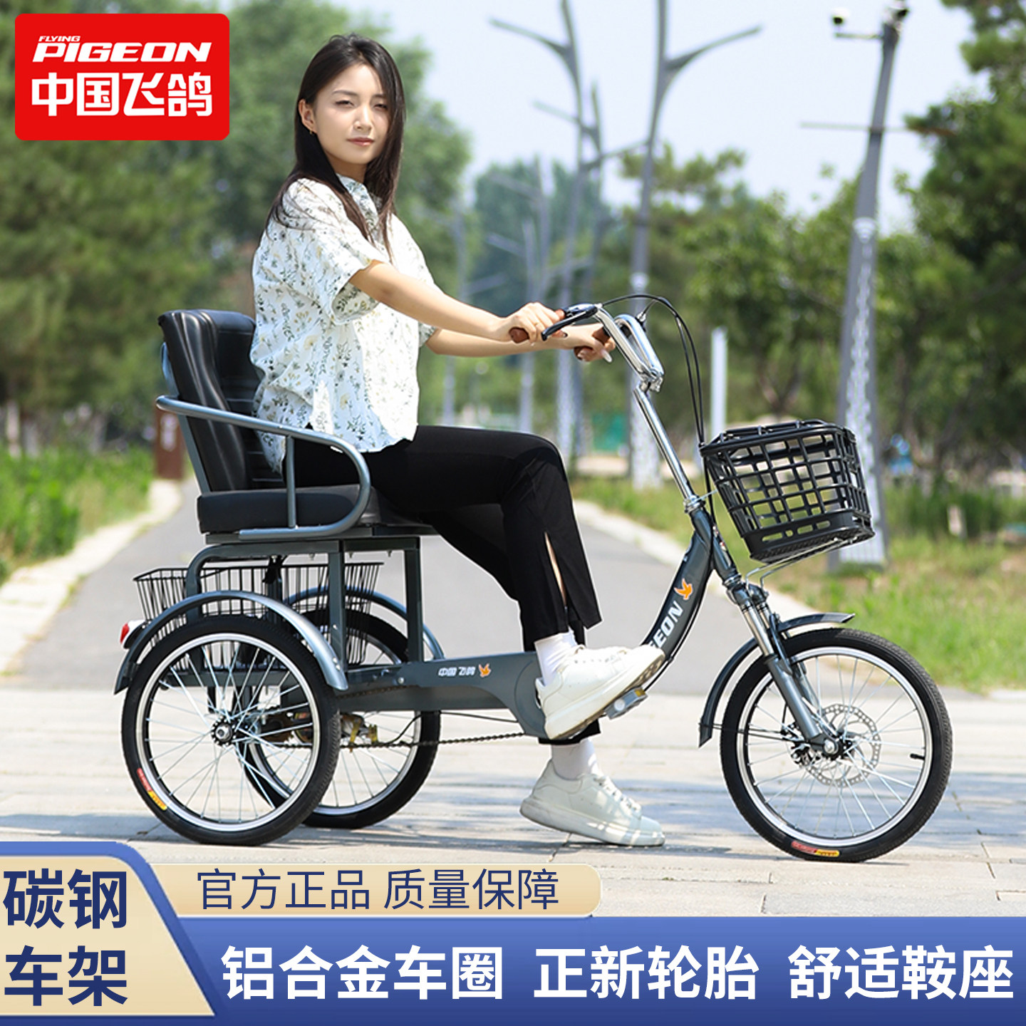 飞鸽代步三轮车脚蹬成年人力自行脚蹬脚踏老人轻便加大座椅买菜车