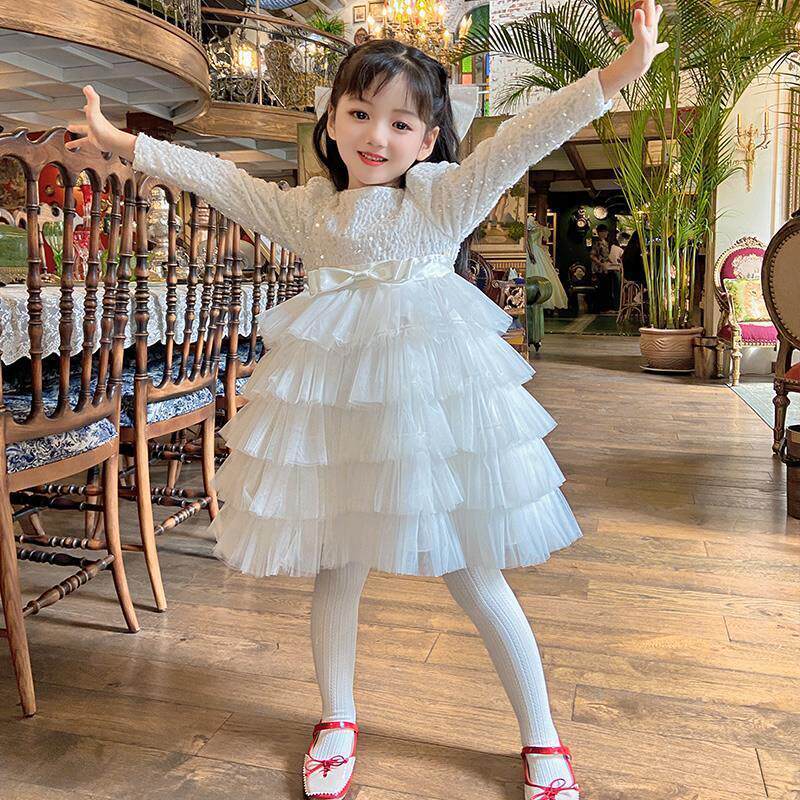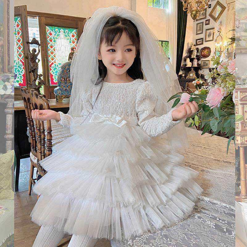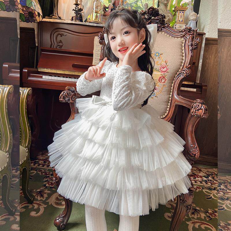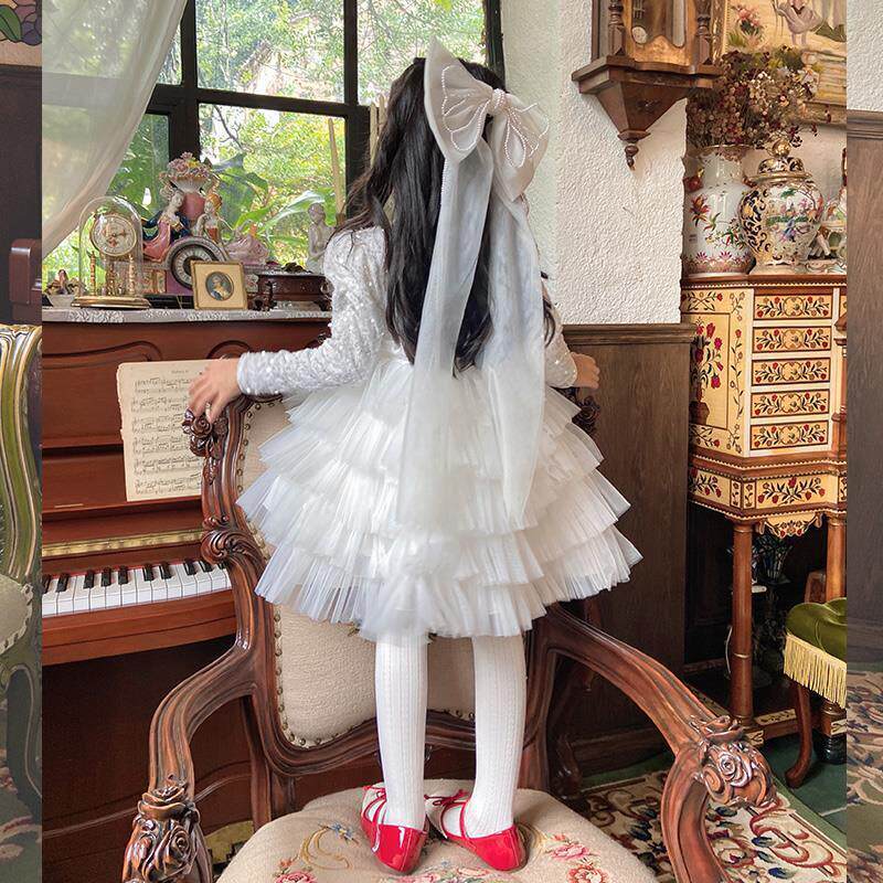 女童白色连衣裙生日礼服儿童参加婚礼秋冬party裙儿童十岁公主裙