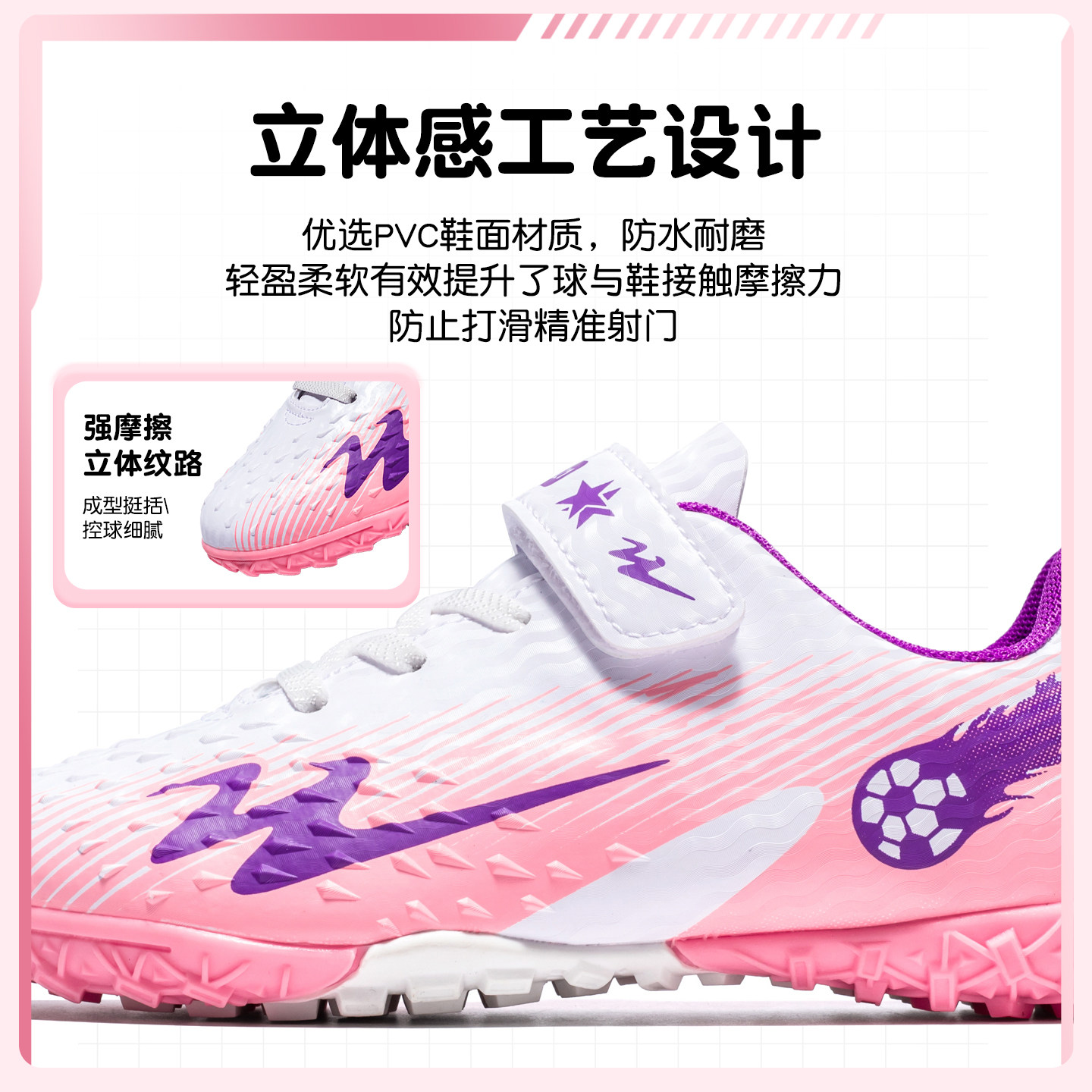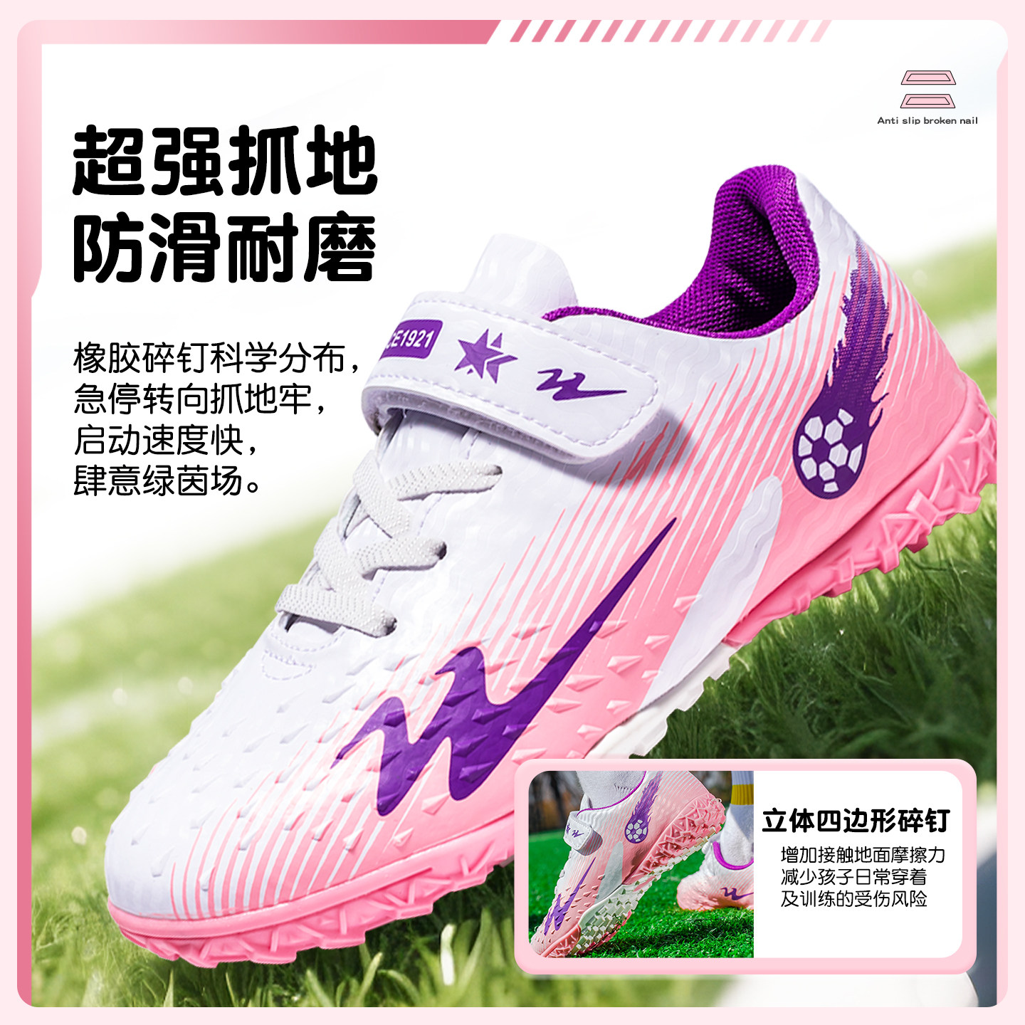 双星儿童足球鞋女孩女童TF透气男孩小学生专用女款碎钉专业训练鞋