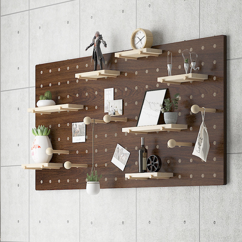 实木洞洞板定制木质免打孔墙上置物架厨房玄关墙面收纳装饰背景墙