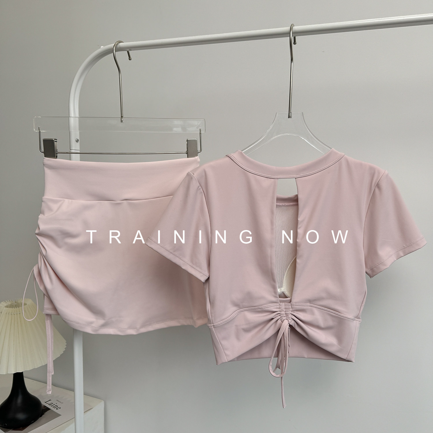 瑜伽服上衣女套装2025新款带胸垫高级感普拉提训练服运动健身短袖