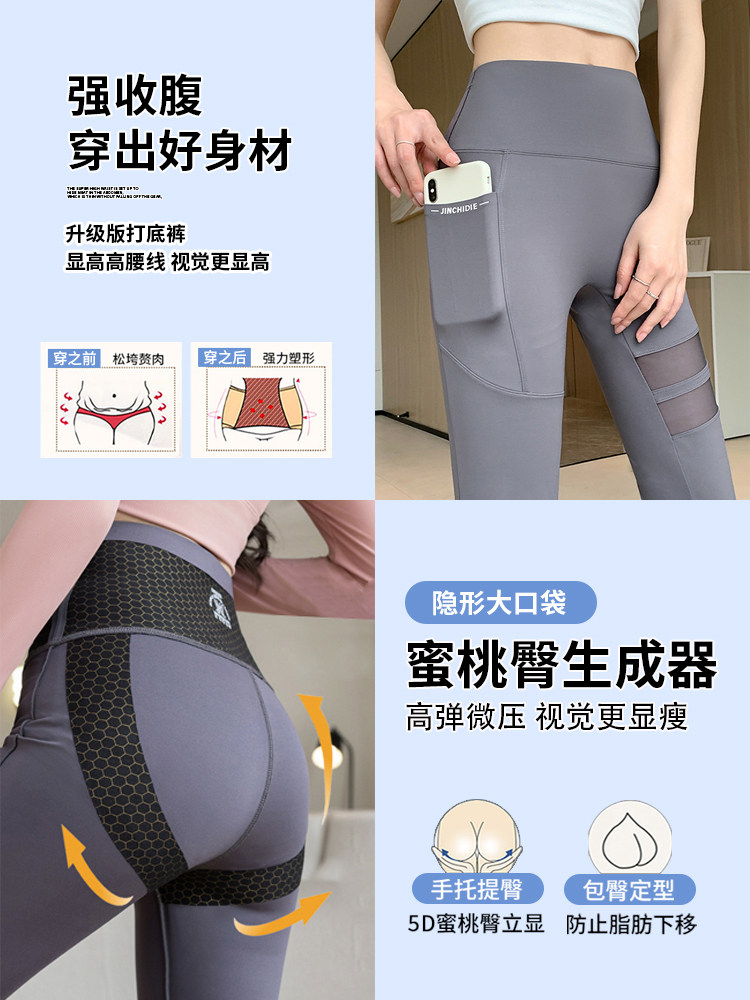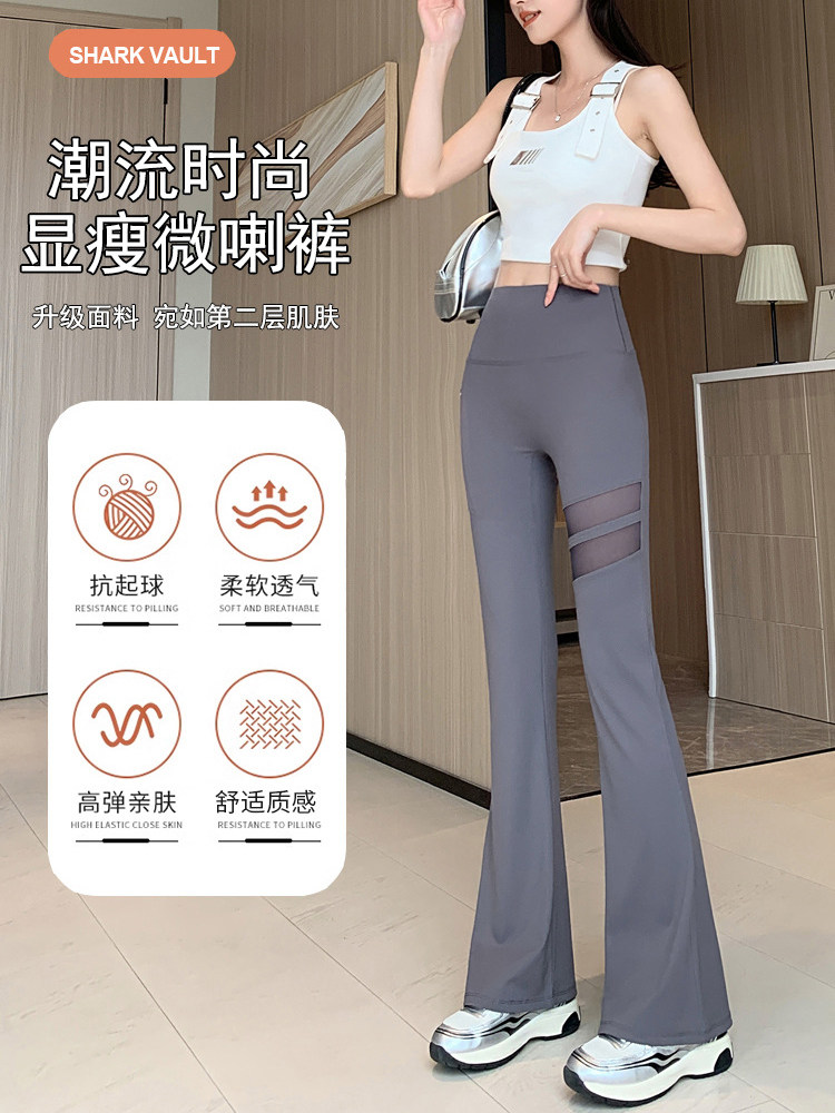 微喇鲨鱼裤女外穿夏季薄款高腰提臀网纱大码显瘦口袋健身瑜伽裤