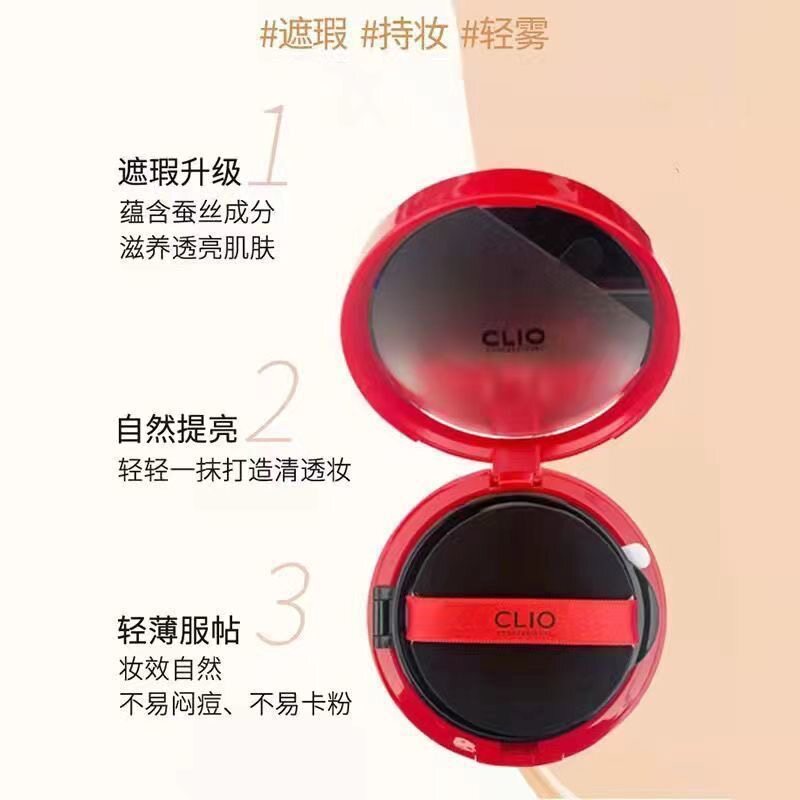 珂莱欧clio红色气垫bb霜美白防晒隔离遮瑕三合一不脱妆哑光粉底液