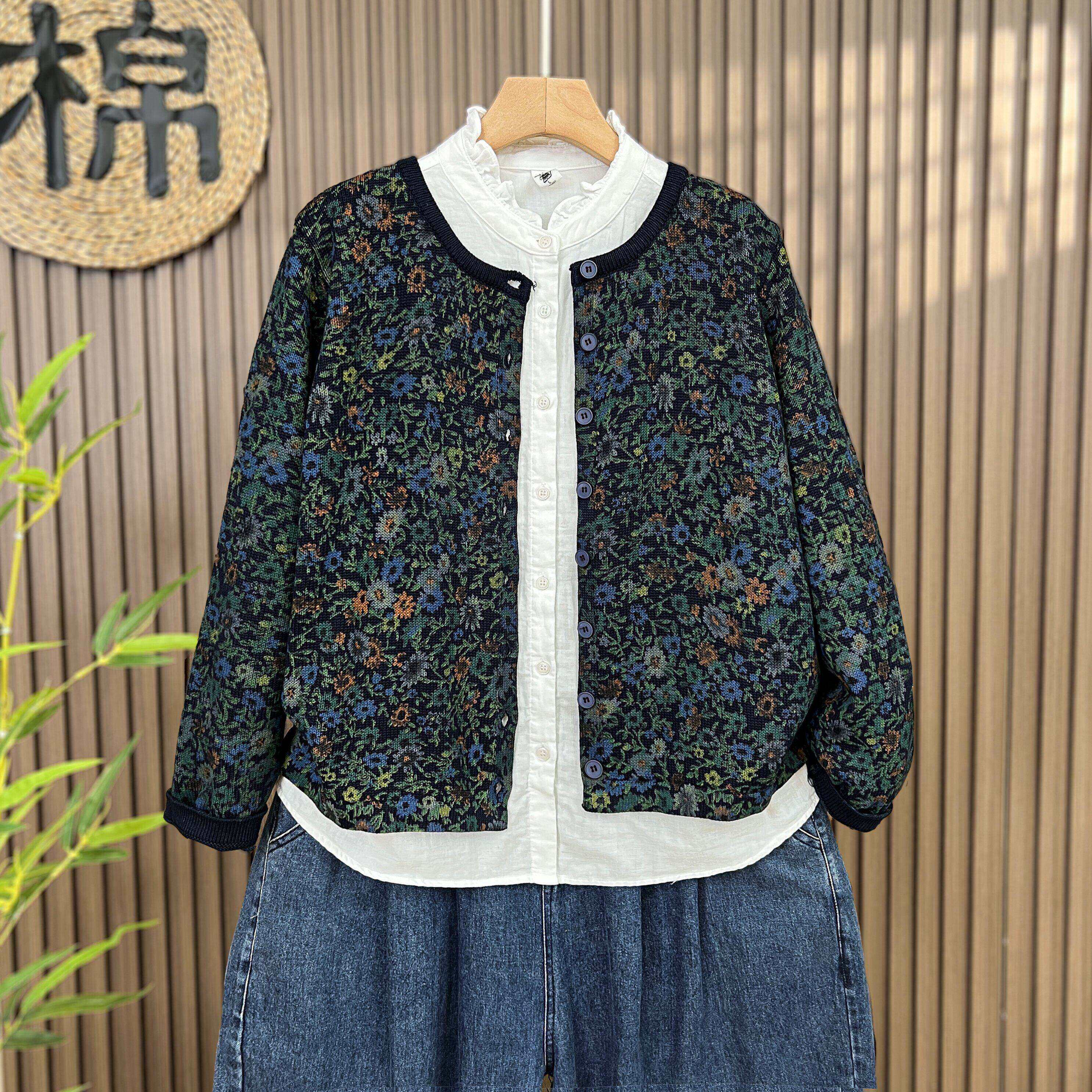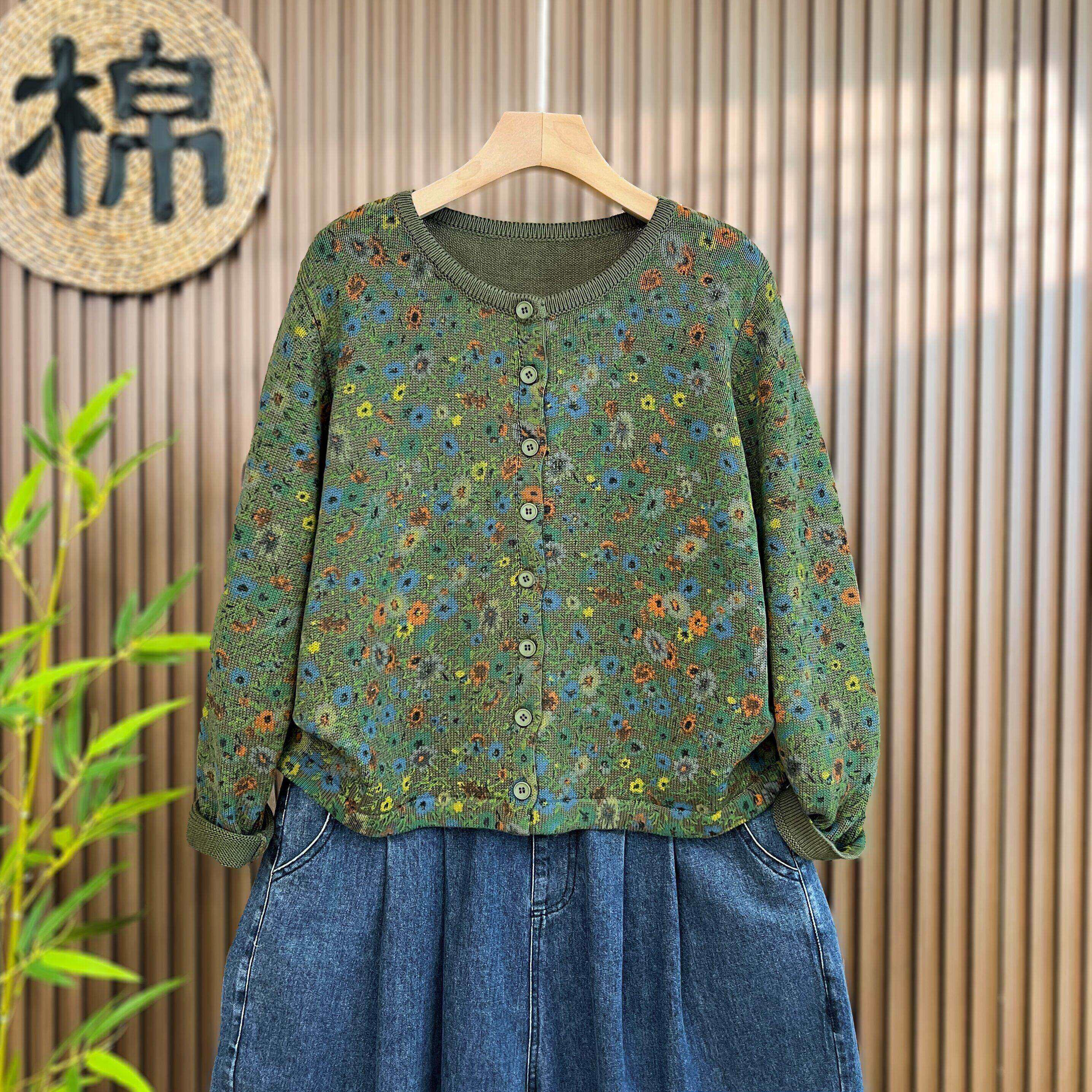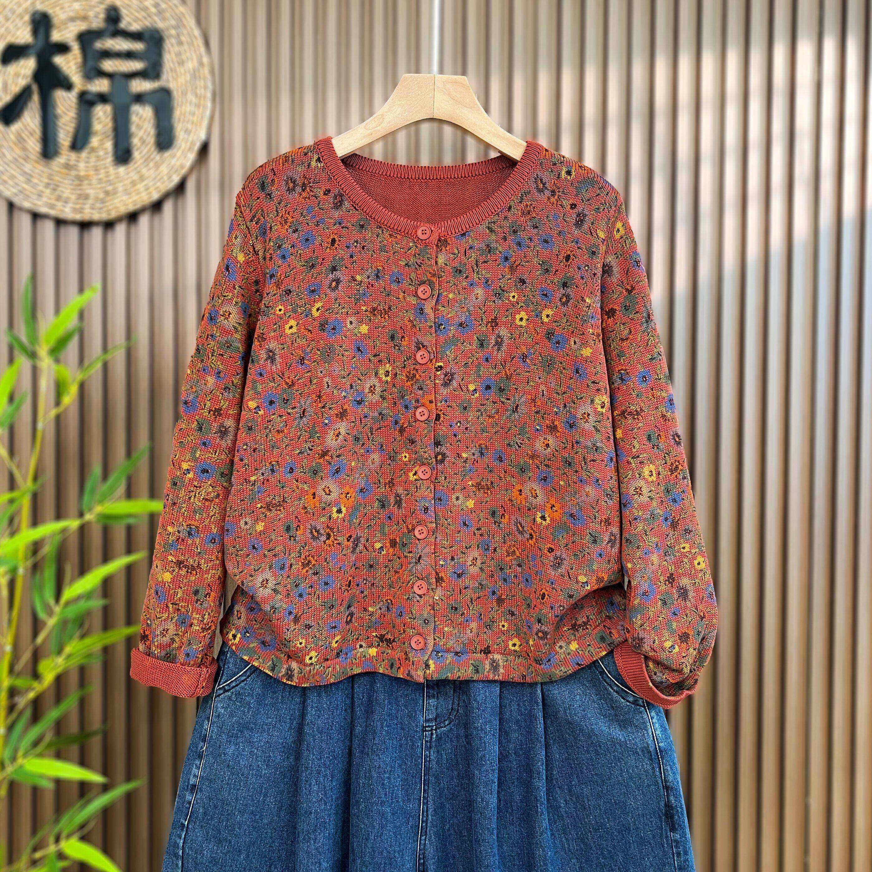 2026新款韩系女款印花圆领宽松毛衣外穿针织开衫秋冬长袖上衣外搭