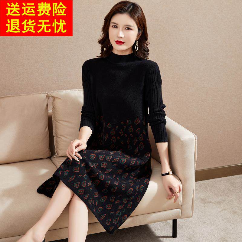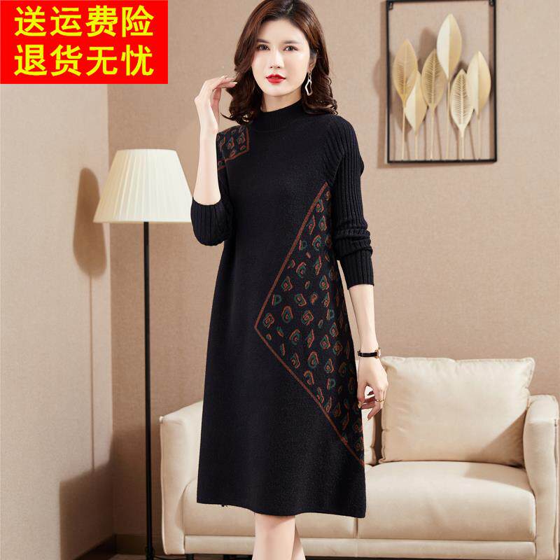 毛衣裙女长款过膝秋冬中年轻妈妈装内搭针织打底羊毛衫毛衣连衣裙
