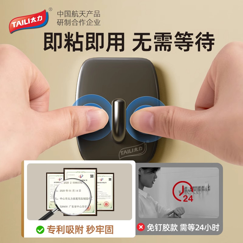太力不锈钢挂钩粘胶强力承重乳胶漆墙面免打孔门后壁挂式无痕粘钩