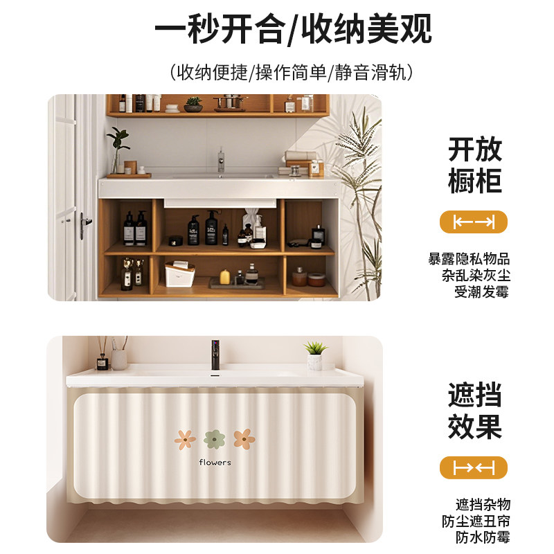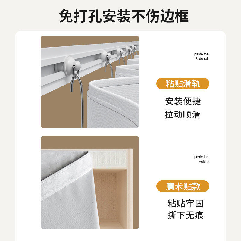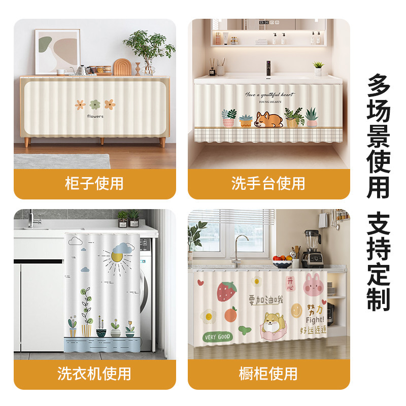 洗手台防水帘布杂物柜子遮挡帘免打孔自粘卫生间厨房橱柜防尘遮丑