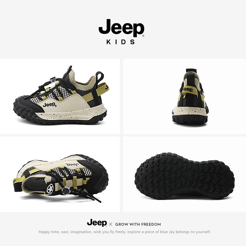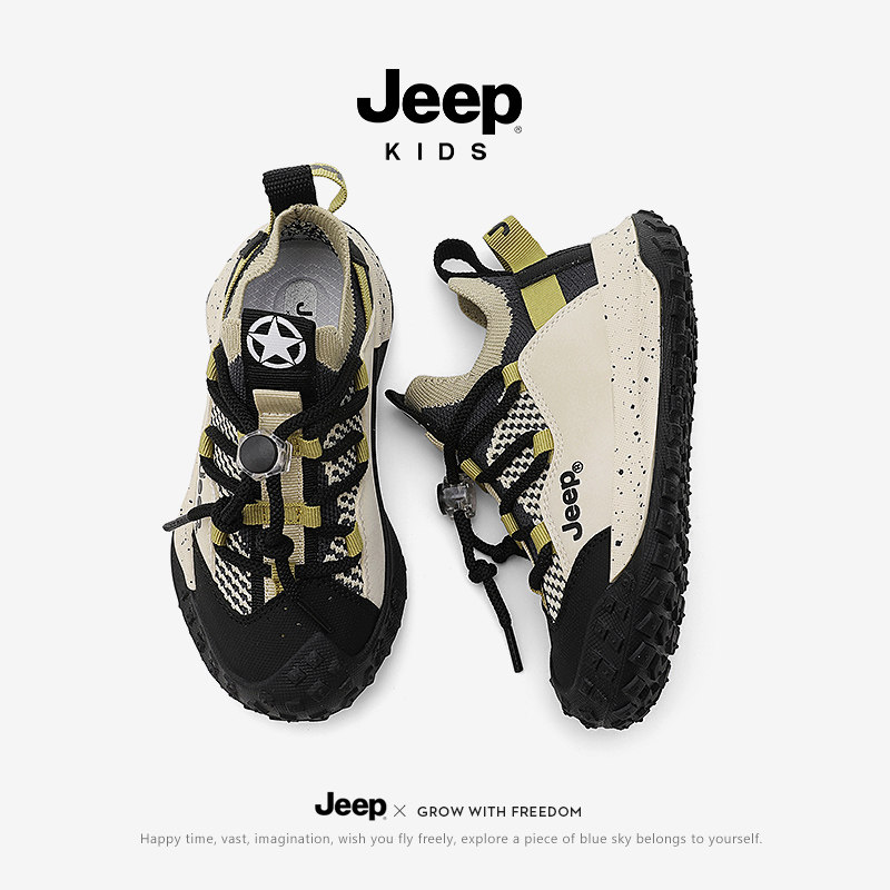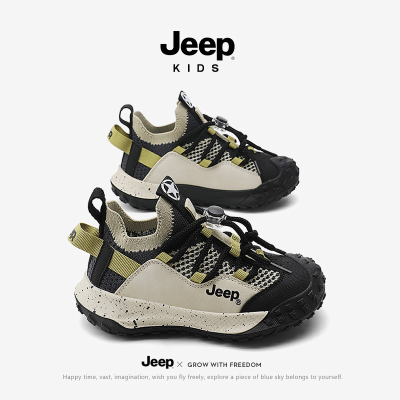 jeep男童鞋一脚蹬夏季透气儿童薄款网面网鞋中大童男孩软底运动鞋