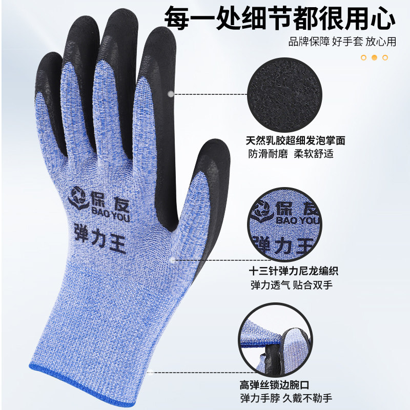 星宇保友弹力王手套劳保耐磨防滑工作胶皮乳胶发泡工地干活男橡胶