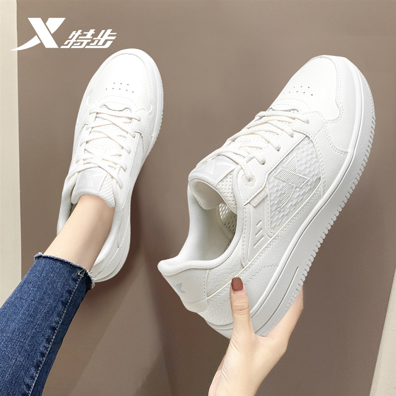 特步女鞋小白鞋轻便板鞋女春季新款透气滑板鞋官方正品学生运动鞋