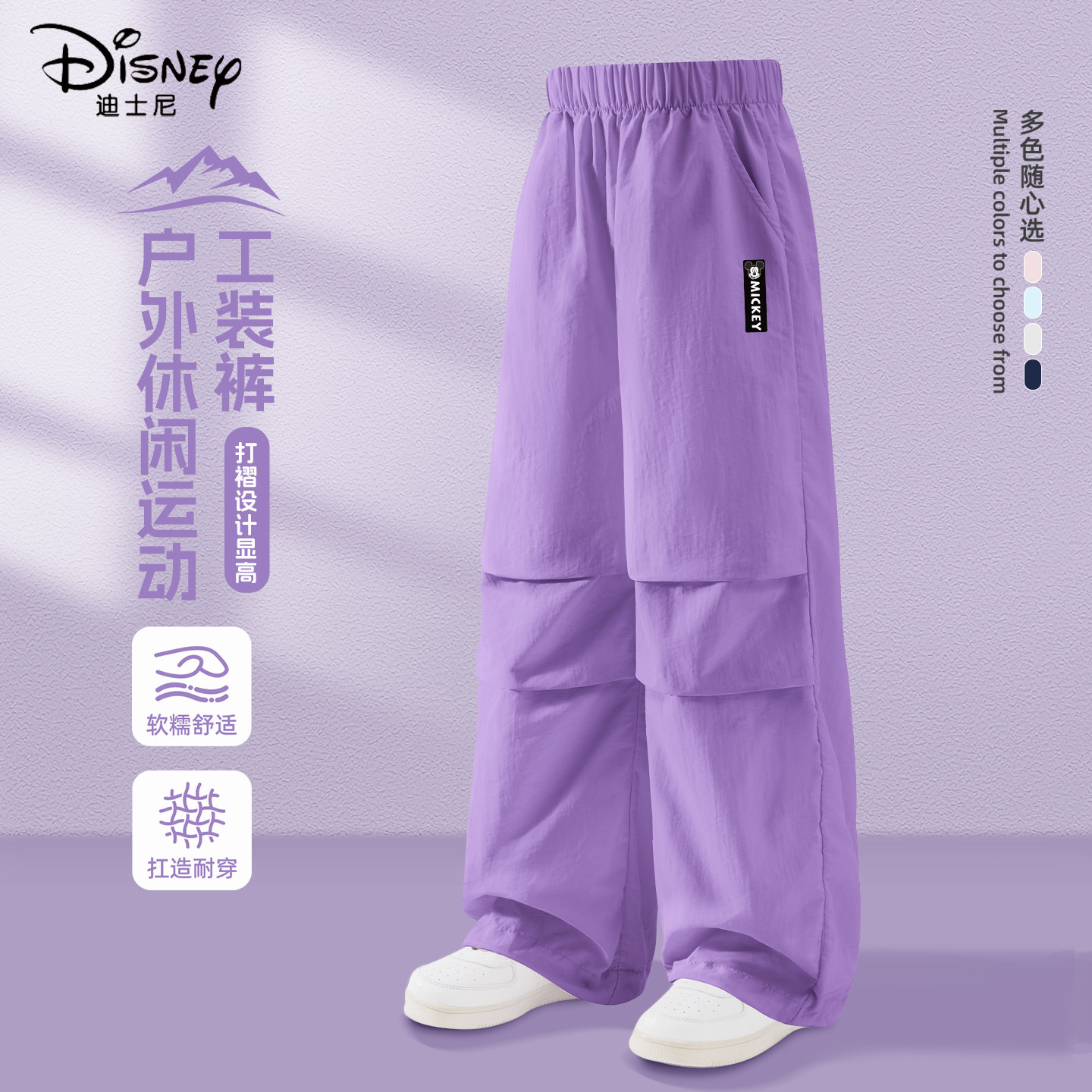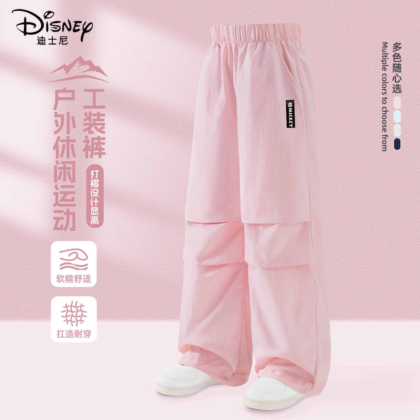 迪士尼女童裤子春装薄款2026新款春秋童装工装裤洋气春季儿童长裤