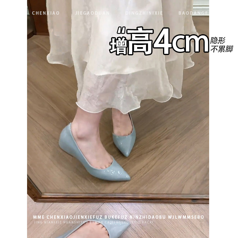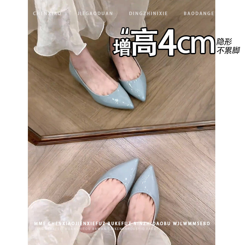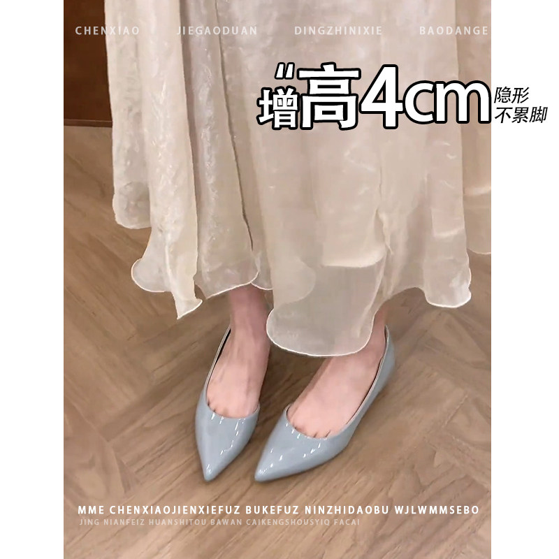 不累脚!内增高4CM法式尖头玛丽珍鞋2026秋新款小个子浅口单鞋女