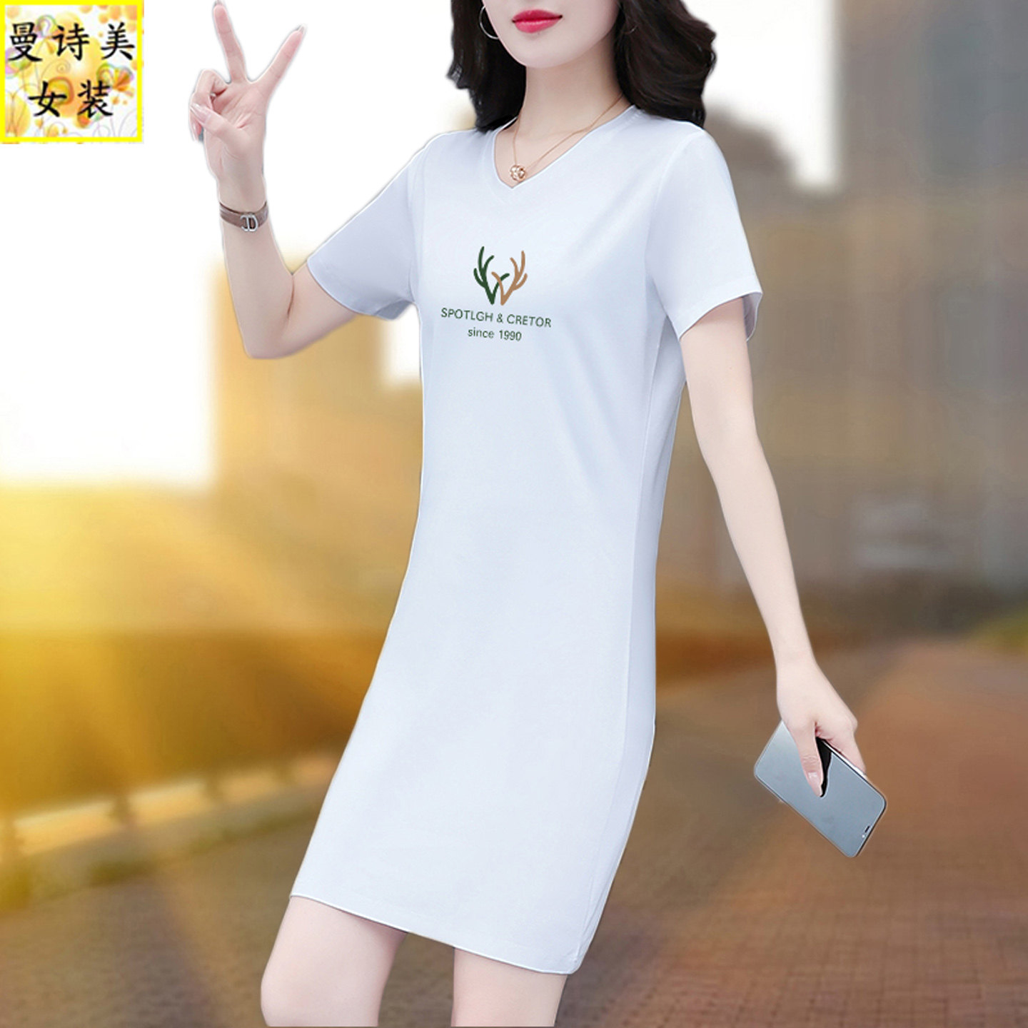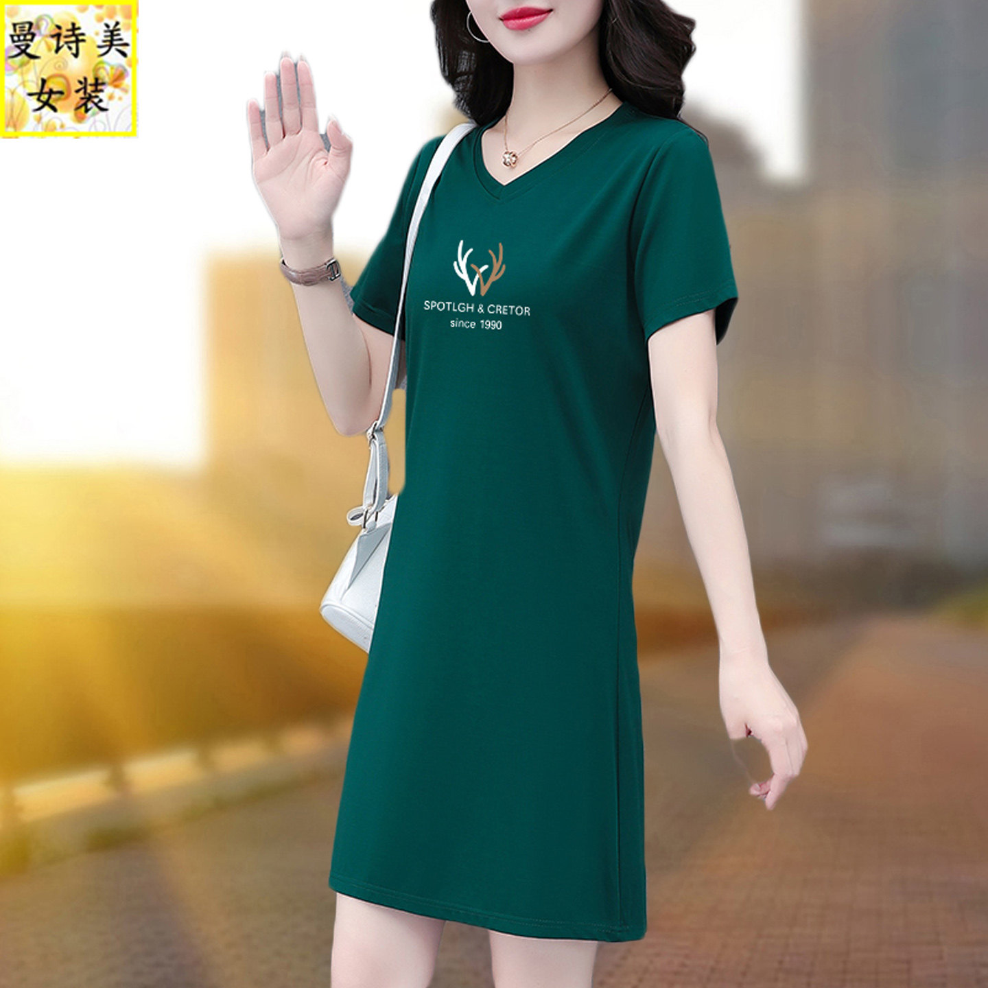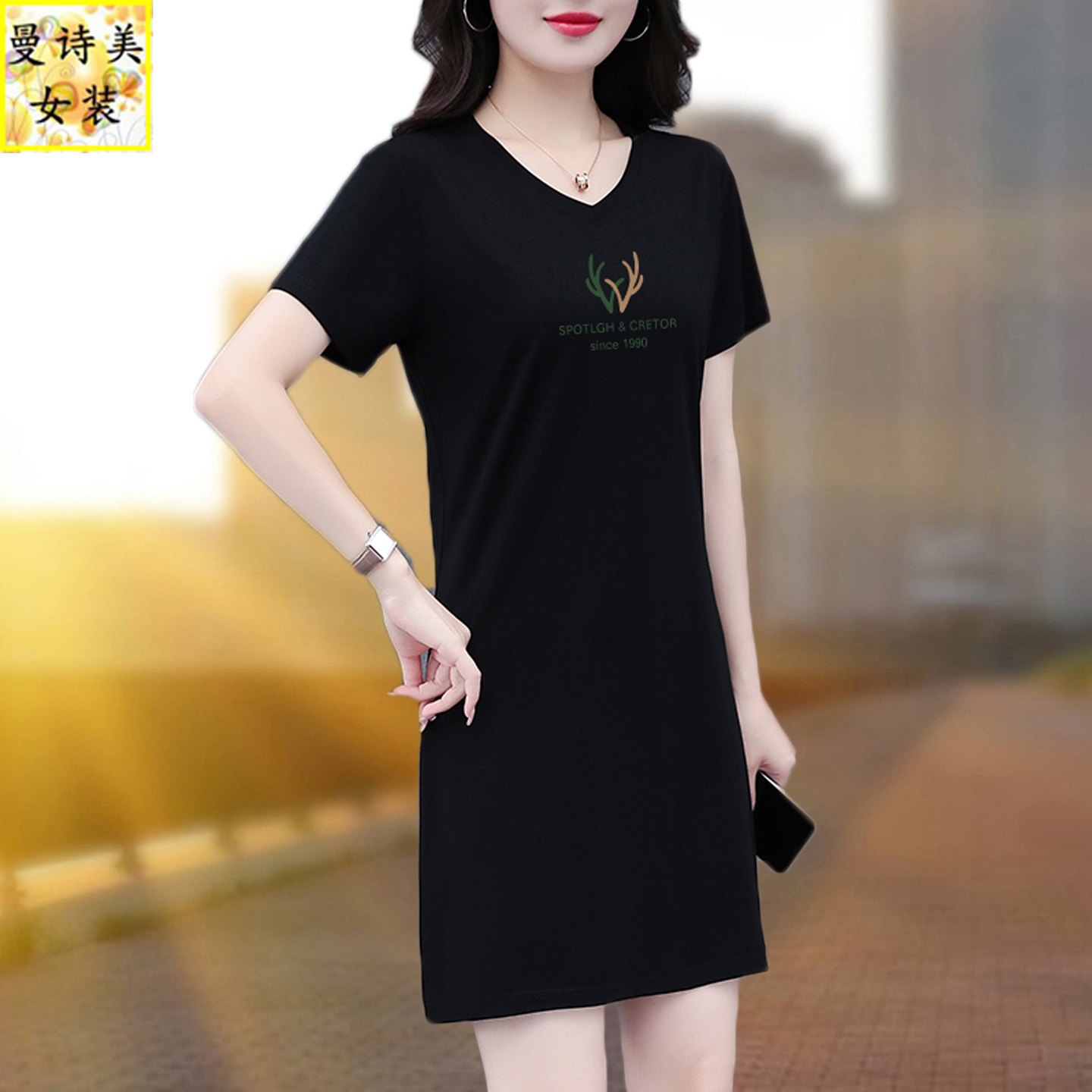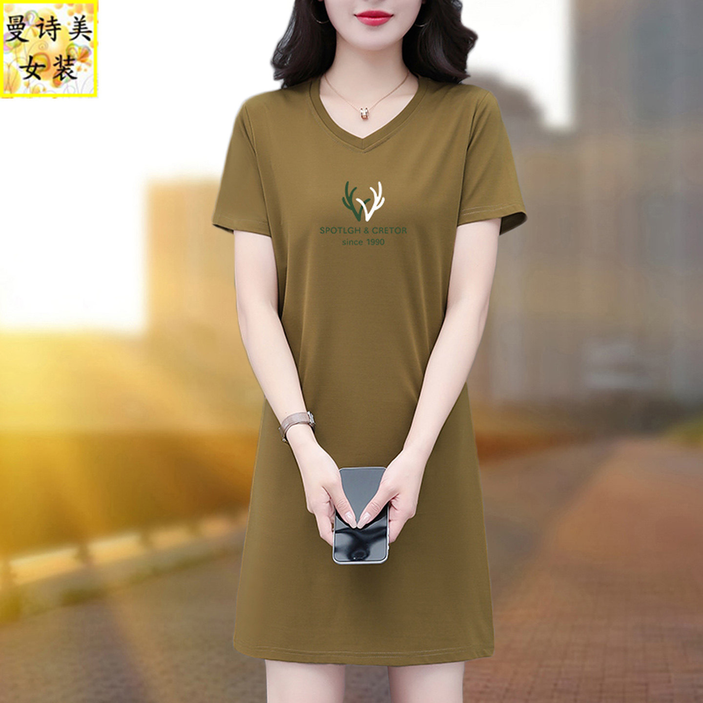 冰丝连衣裙女中长款2026年夏季新款小个子夏天女装夏款休闲T恤裙
