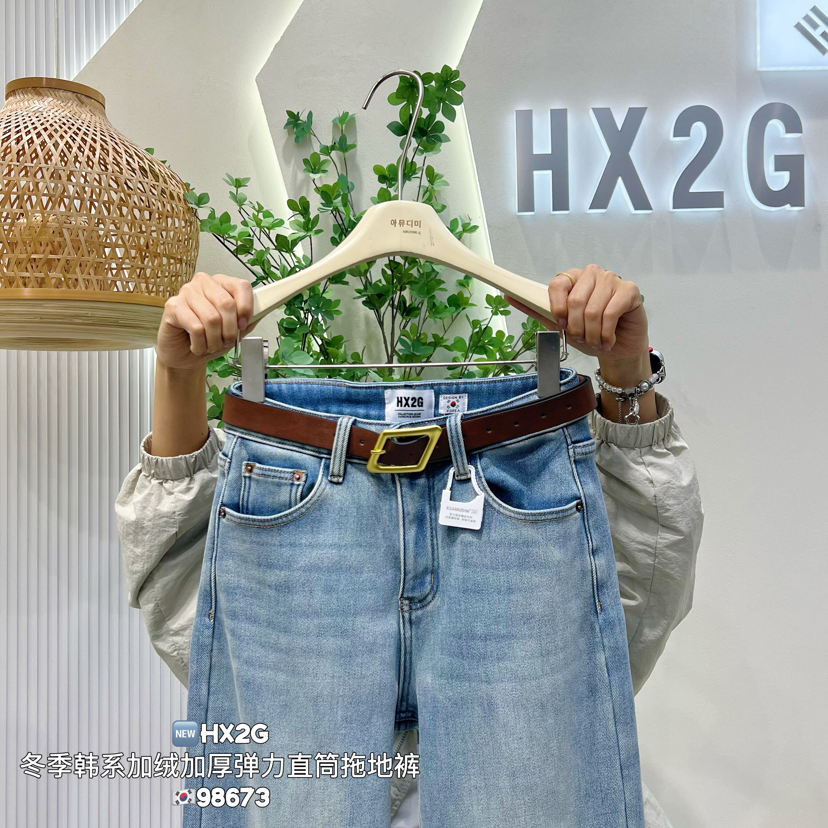 HX2G加绒加厚直筒阔腿裤女2025冬季新款高腰显瘦弹力拖地牛仔裤子
