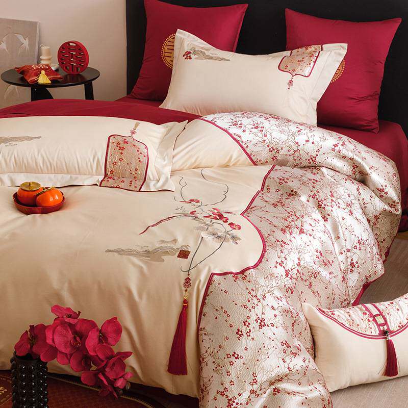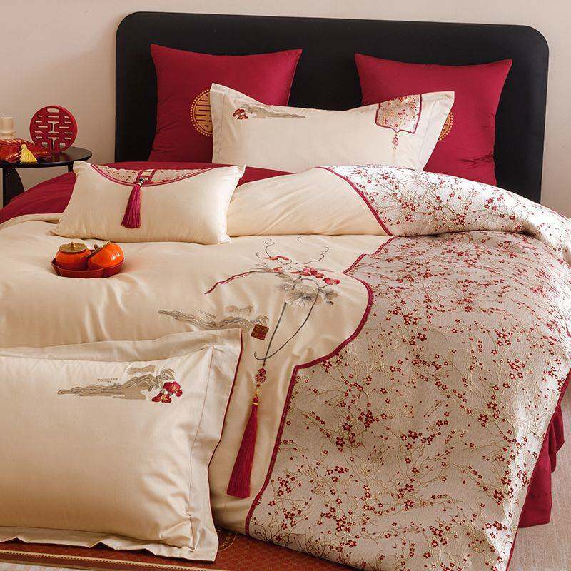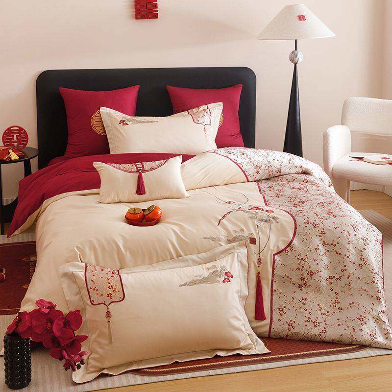 纯棉高档结婚100S长绒棉四件套全棉亲肤贡缎婚庆陪嫁床品四季通用