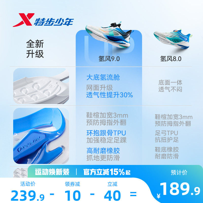 【氢风9.0跑鞋】特步儿童官方网面透气跑步鞋男童运动鞋女童鞋子