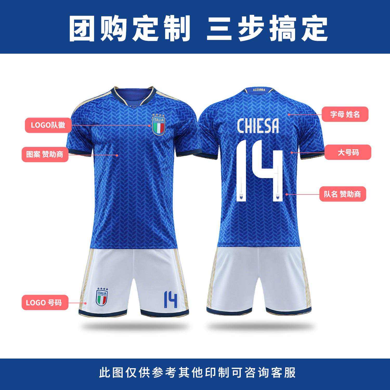 2026美加墨世界杯意大利队蓝色足球服套装男定制儿童训练服装