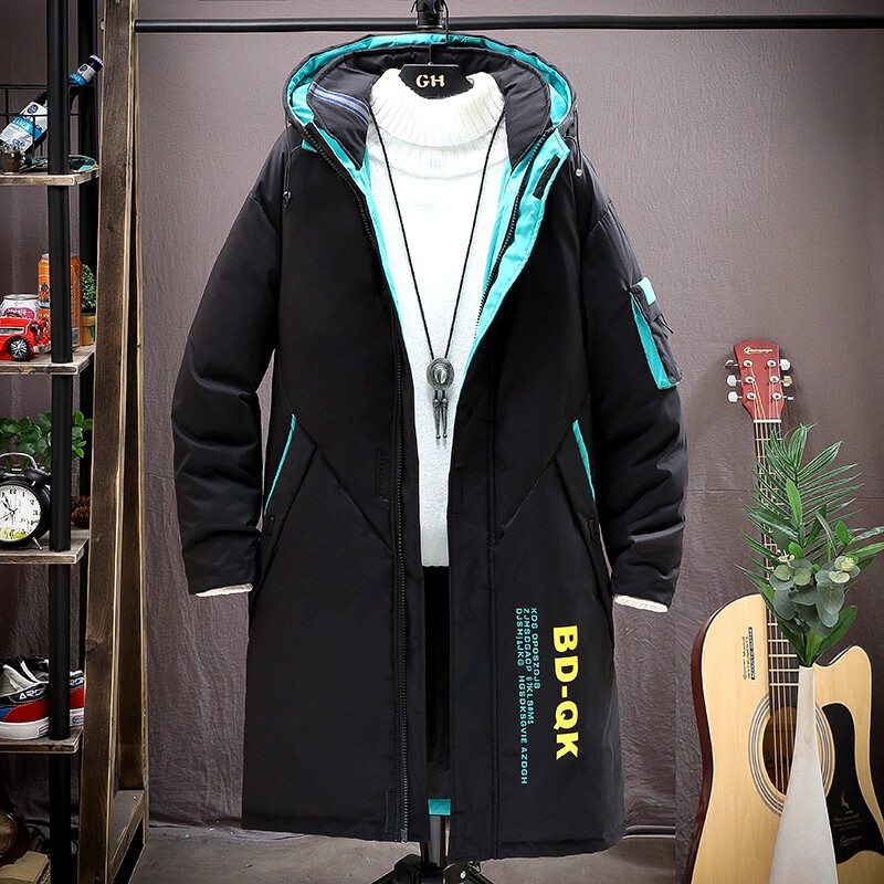 青少年男款羽绒服中长版加厚学生男装帅气棉服潮男士冬季外套反季