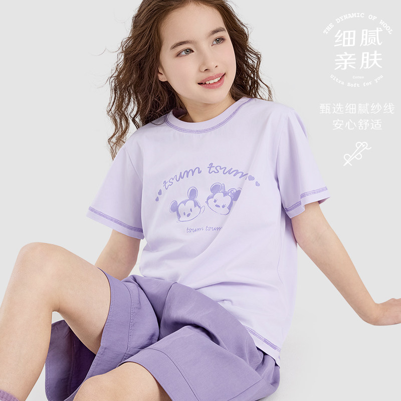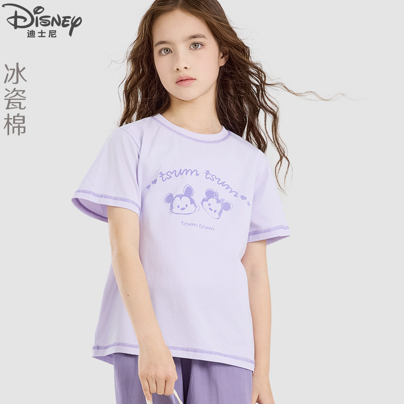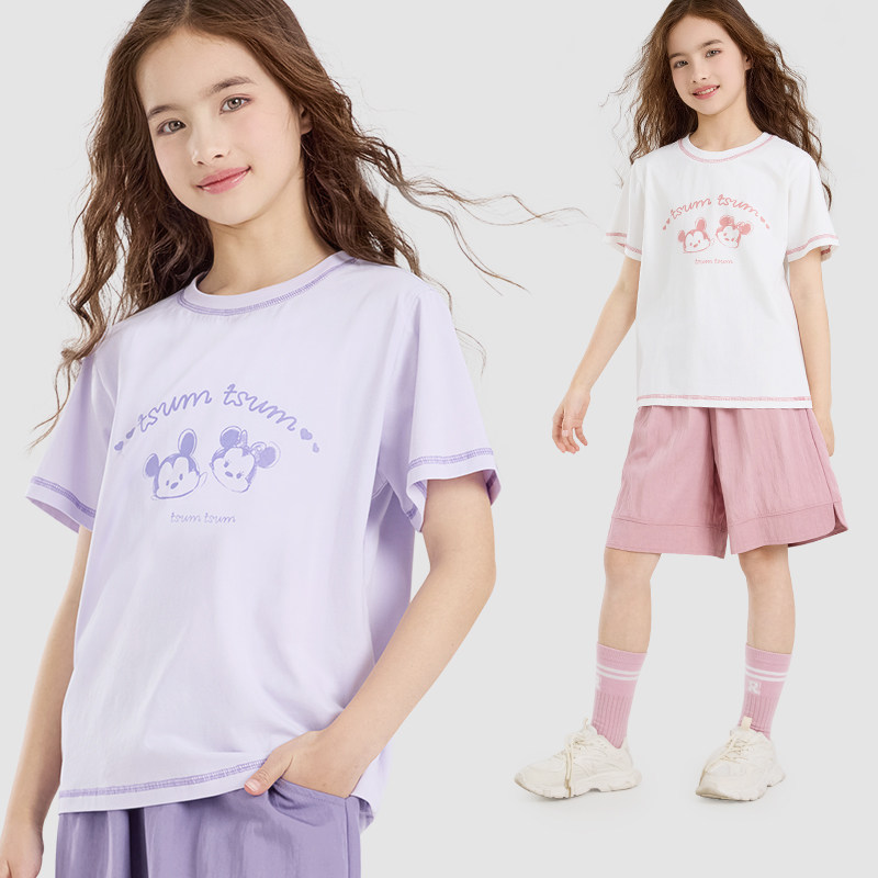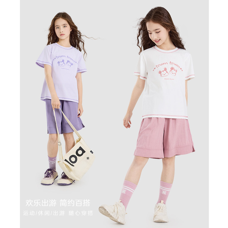 迪士尼女童套装夏季儿童短袖裤子两件套大童洋气T恤短裤薄款童装