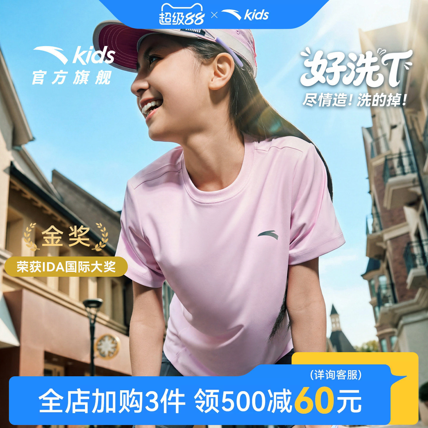 好洗T-安踏儿童短袖T恤衫女童速干衣2026夏季新款女孩运宝宝上衣