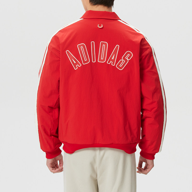 阿迪达斯新年款套装男2026新款运动服红色加绒夹克外套直筒裤长裤