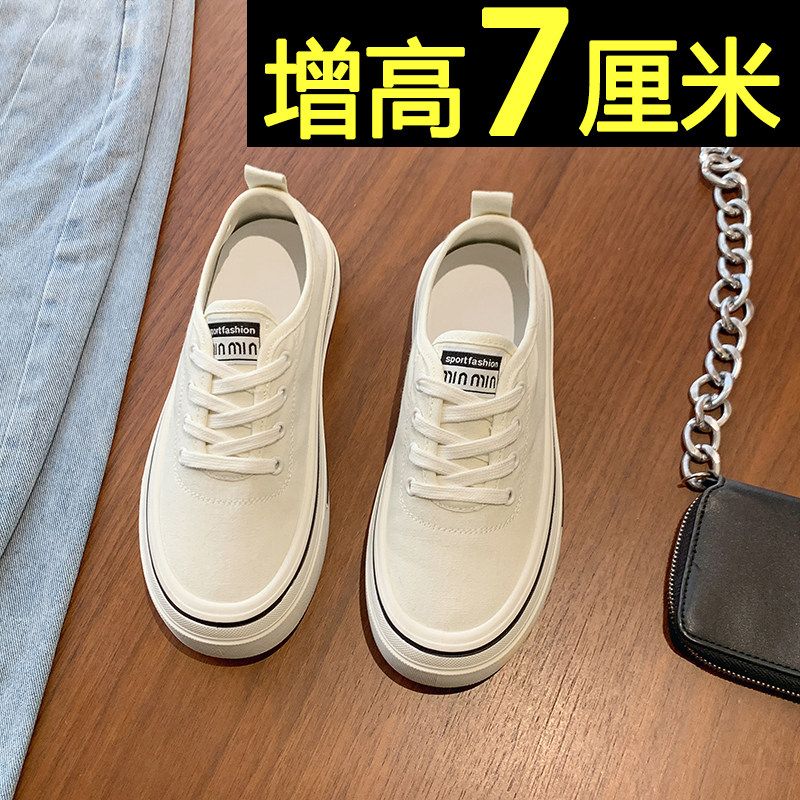 厚底帆布鞋女2026新款夏薄款内增高黑色休闲板鞋轻便透气软底布鞋