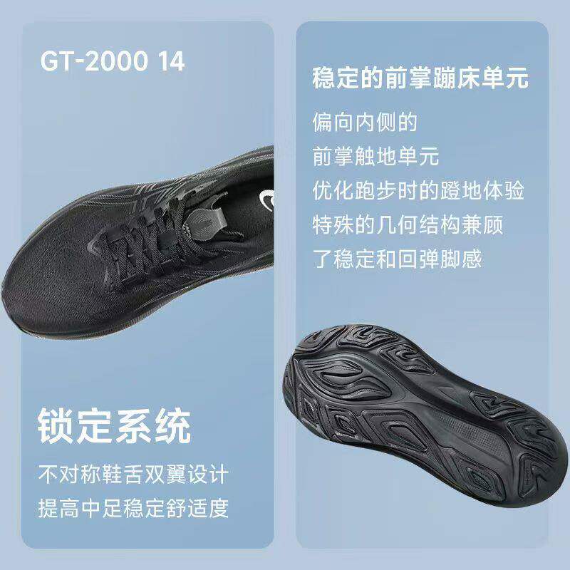 亚瑟士男鞋春季新款GT2000 14跑步鞋黑色透气运动鞋1011C056-002