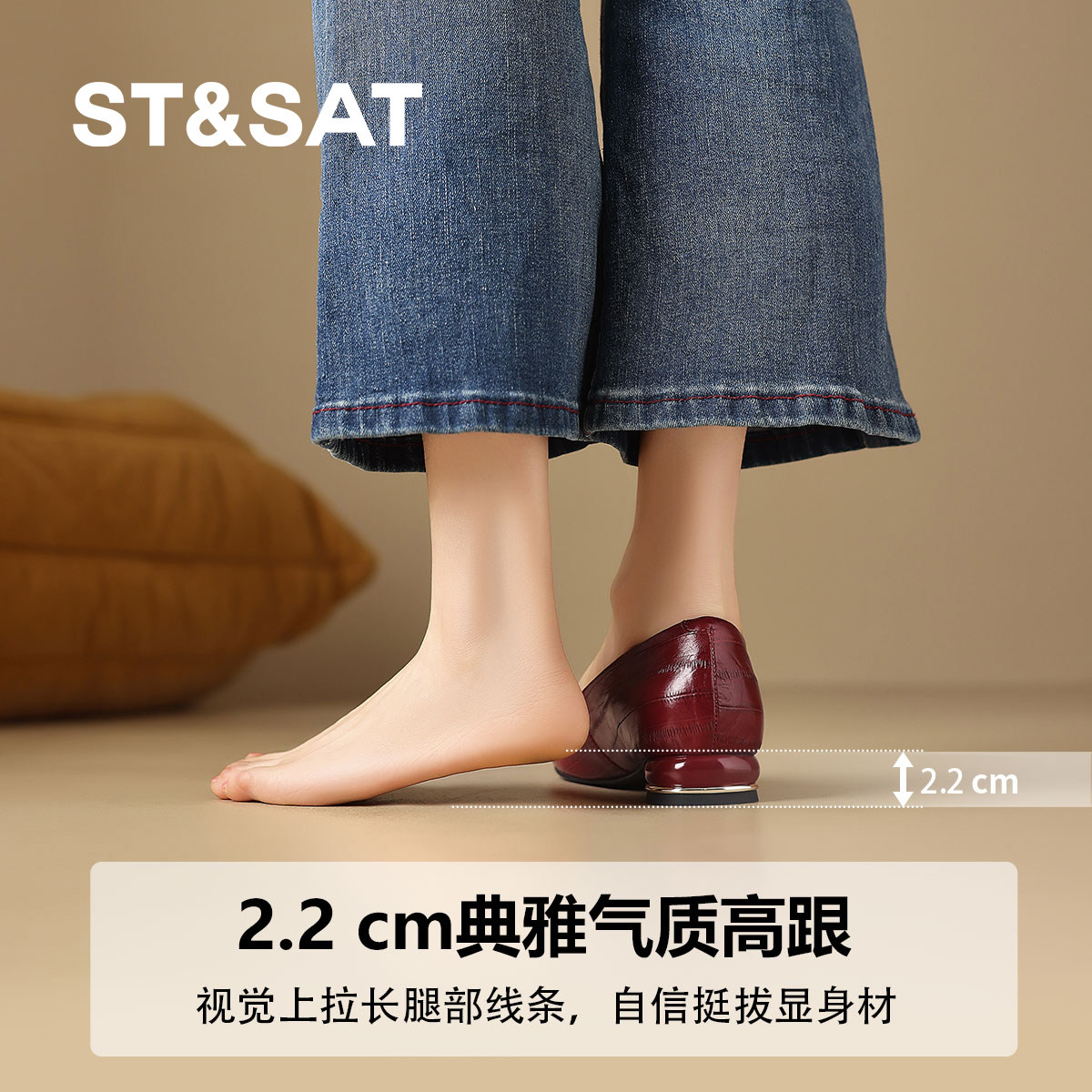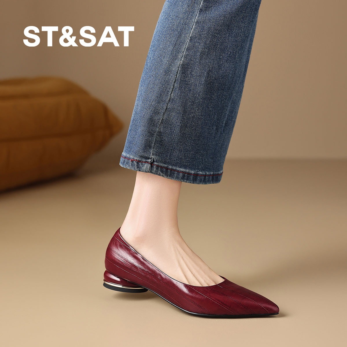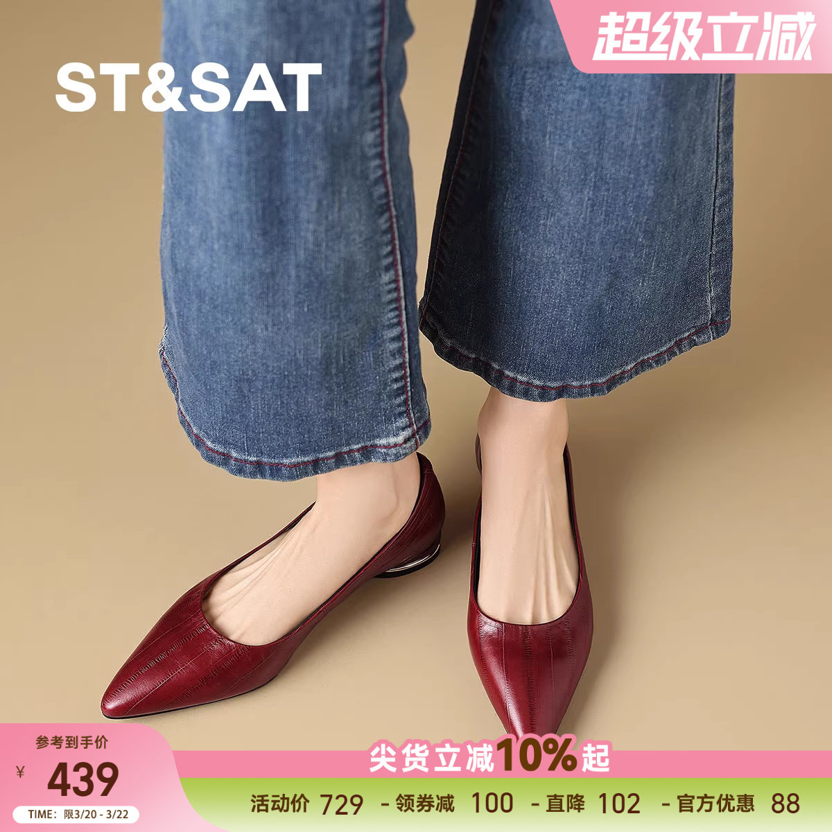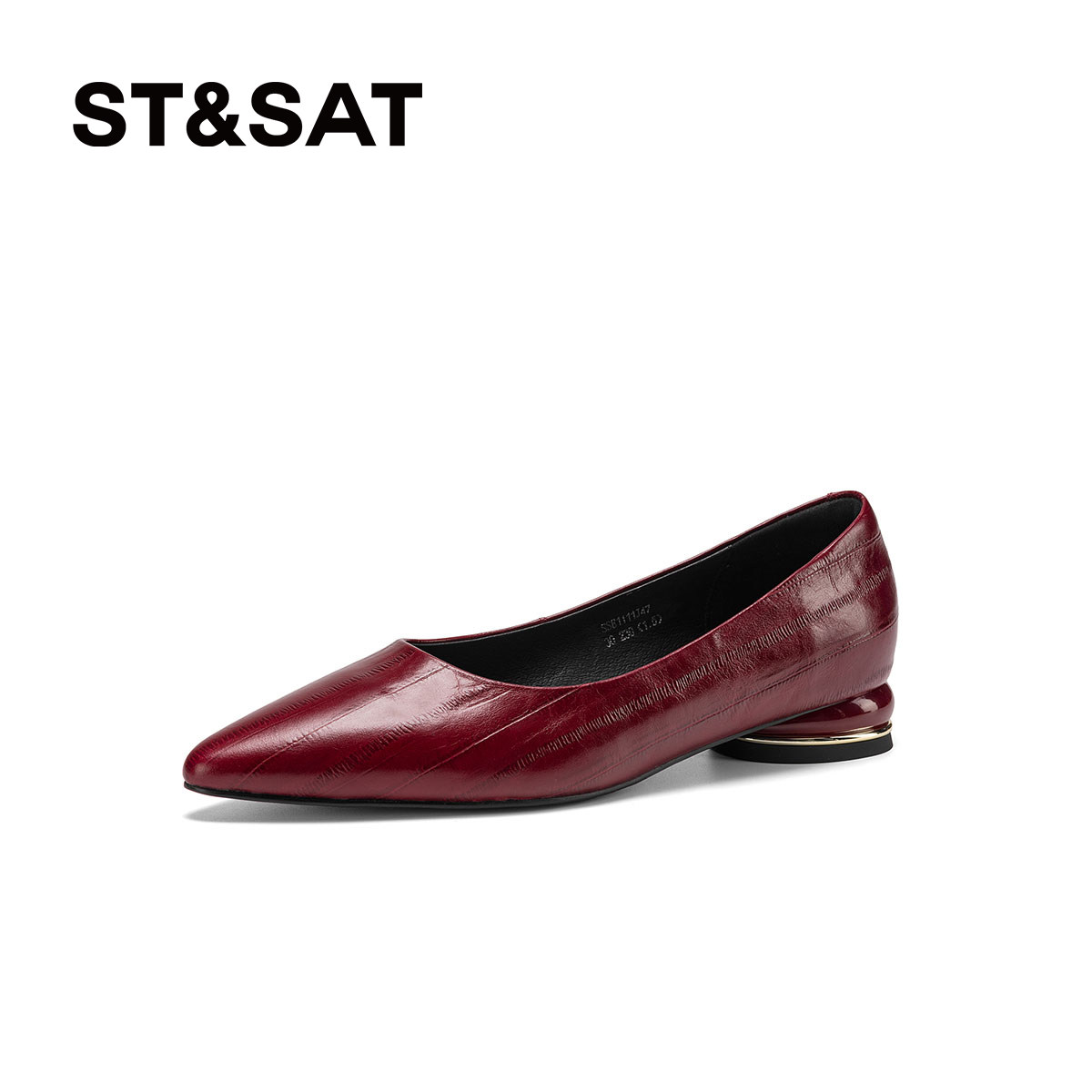 星期六2026春款通勤风尖头浅口单鞋女红色低跟不累脚软底气质女鞋