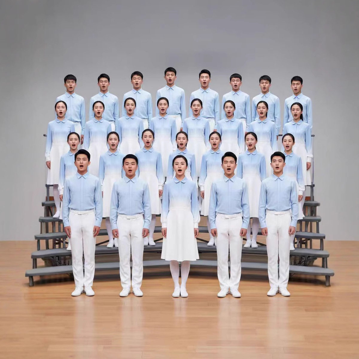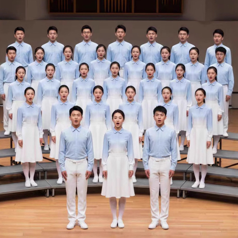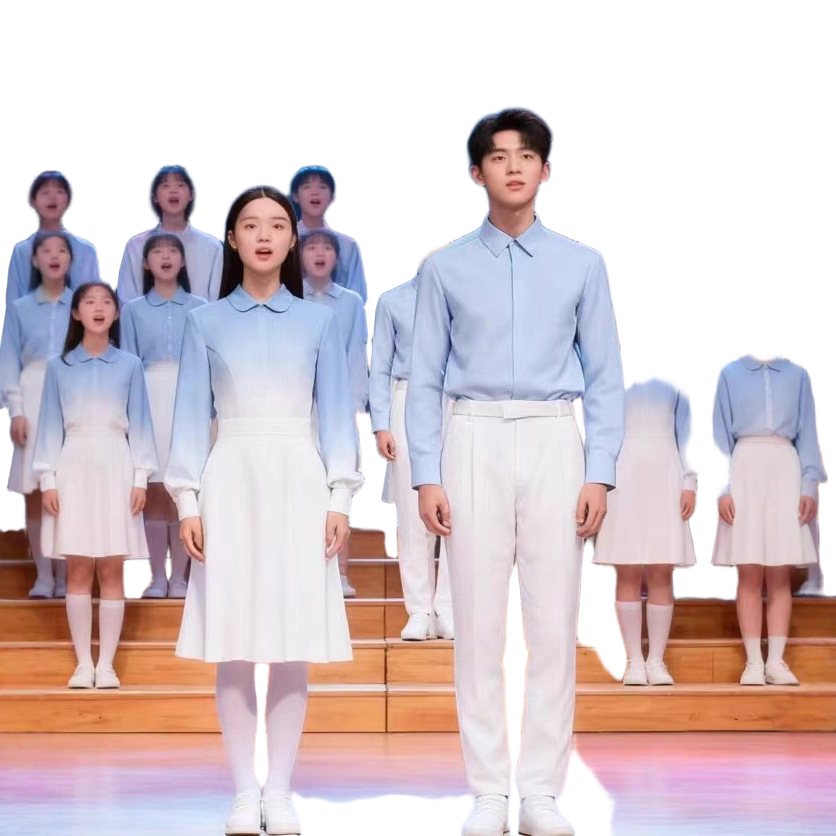 儿童合唱团爱国朗诵比赛演出服女童初中小学生学院风蓝色演讲服装