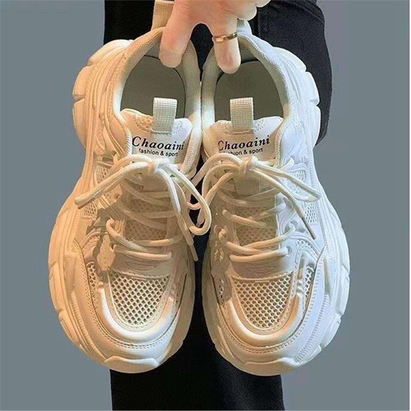 老爹鞋女款2026新款夏季透气薄款单网面小白鞋大童初中学生运动鞋