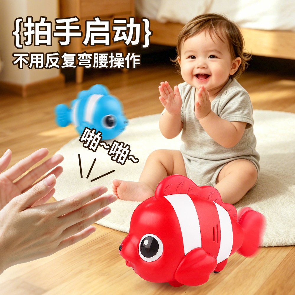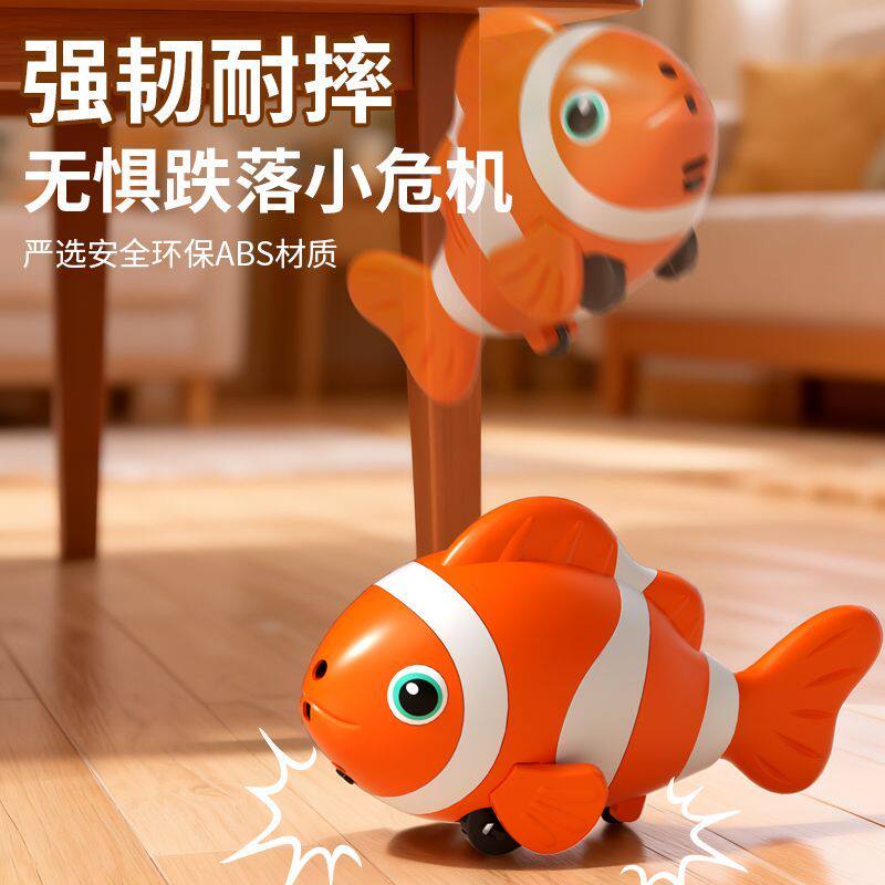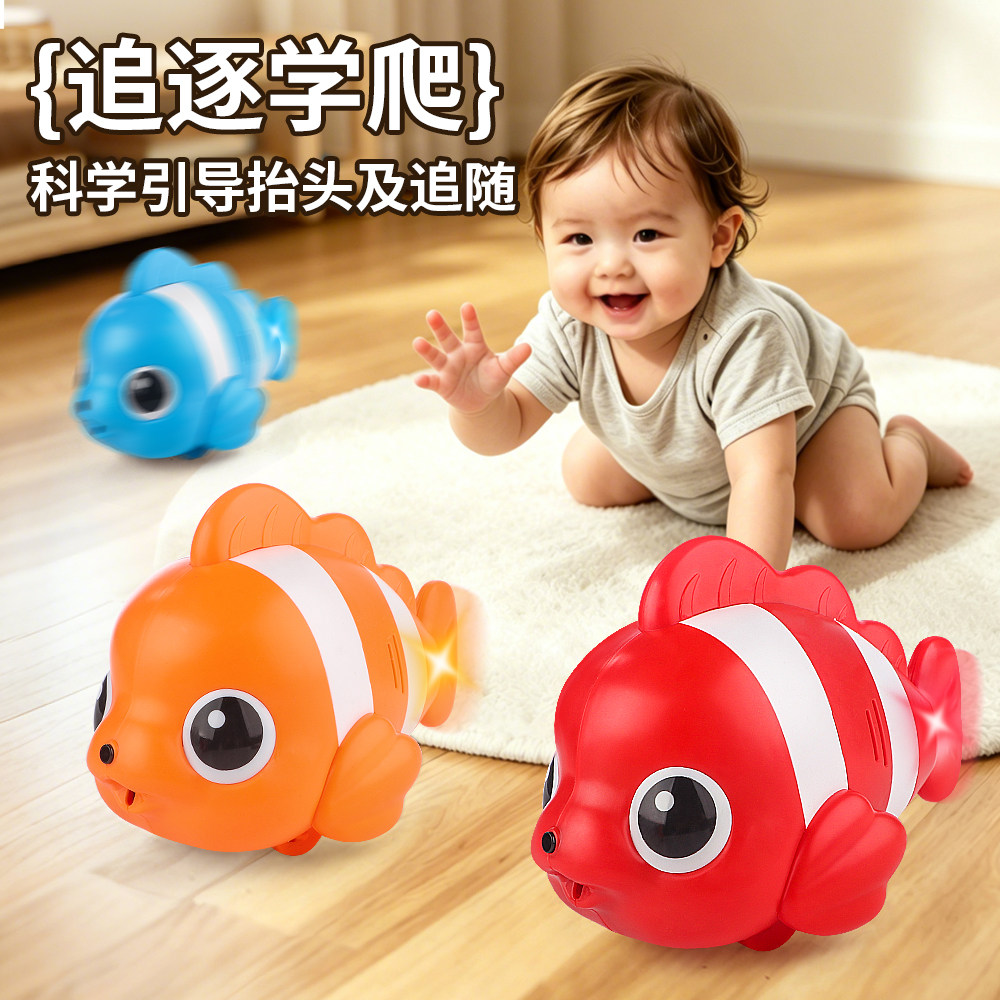 儿童摇摆鱼玩具小宝宝会动的丑鱼跳舞学爬引导婴幼儿电动爬行小鱼