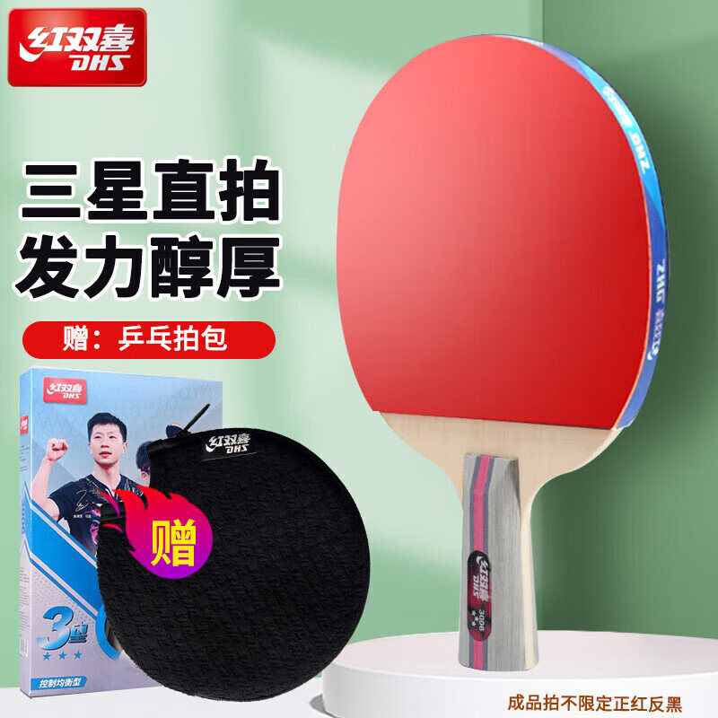红双喜官方正品乒乓球拍三星4星5儿童学生初学进阶专业成人直横拍
