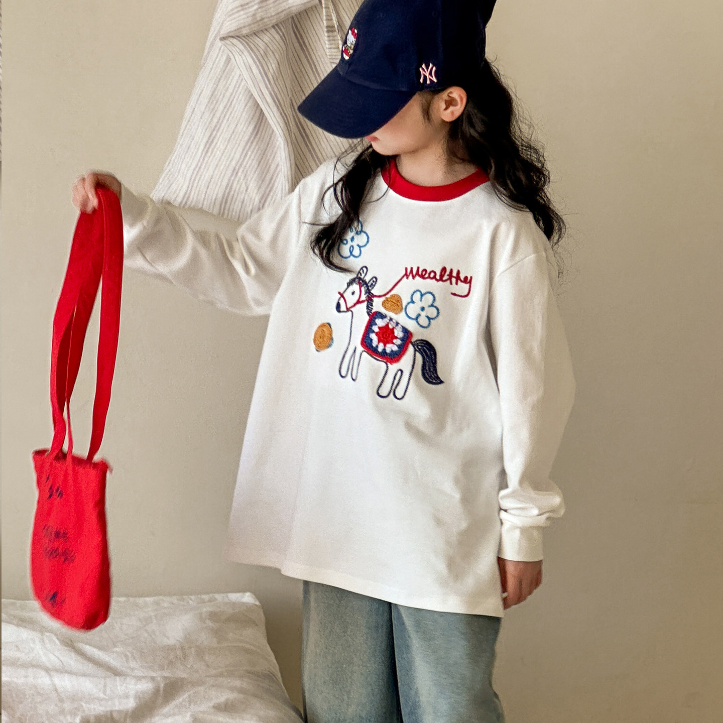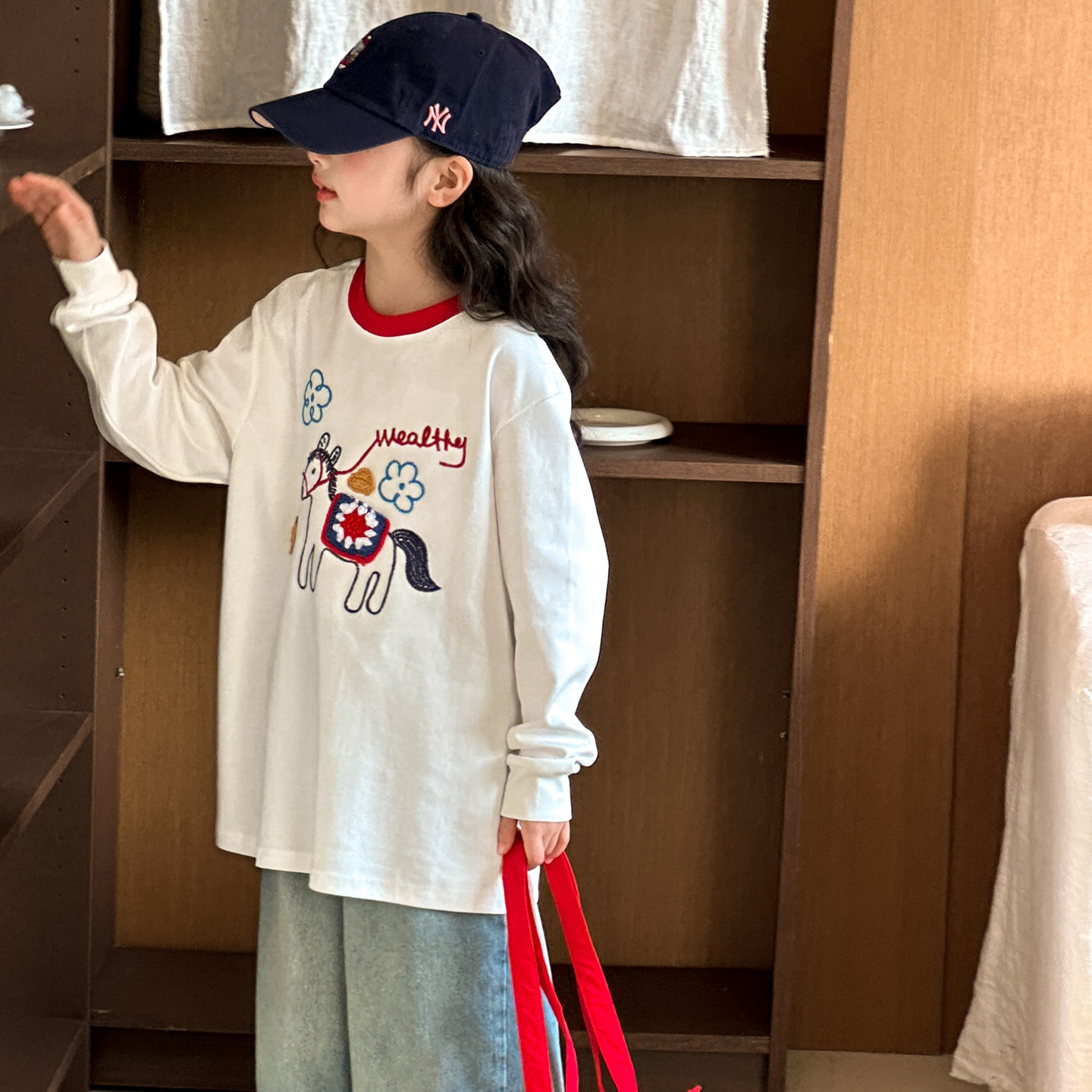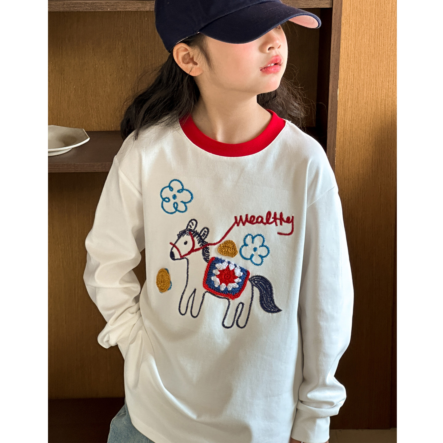女童长袖T恤春装2026新款女大童春装打底衫初中生女孩超好看上衣