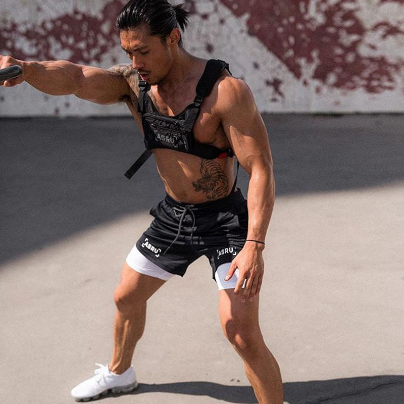 ASRV运动短裤男美式篮球双层内衬跑步训练弹力肌肉速干健身三分裤