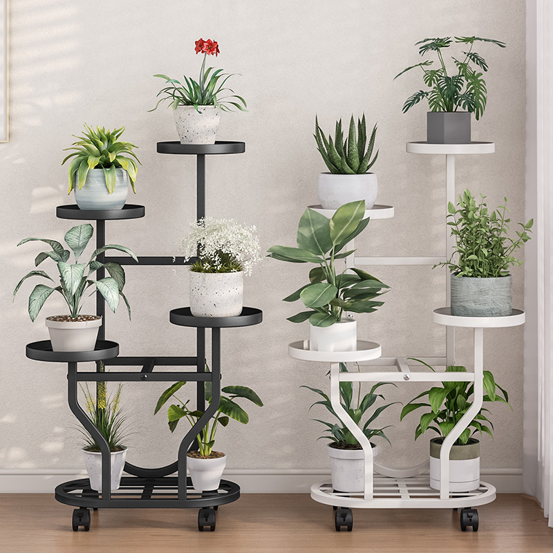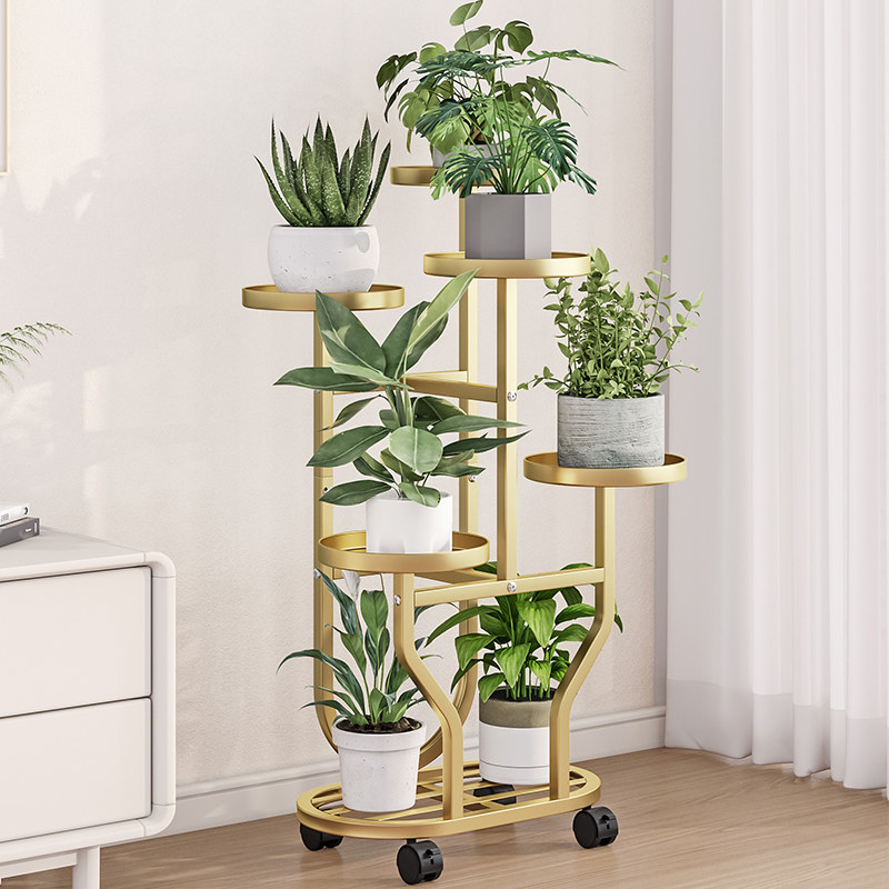 多层家用阳台铁艺花架置物架客厅落地式可移动花架子摆放花盆托架