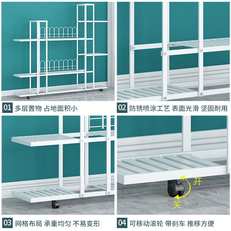 花架置物架阳台花架子客厅落地式铁艺可移动多肉植物花盆托架多层