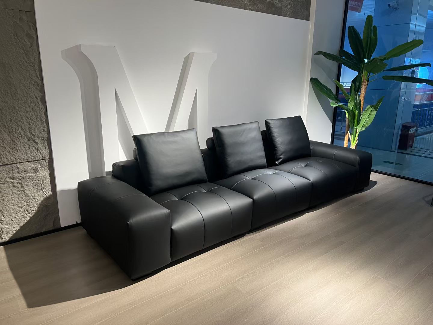 意式极简像素黑色沙发网红设计师贵妃豆腐块客厅复古直拍沙发