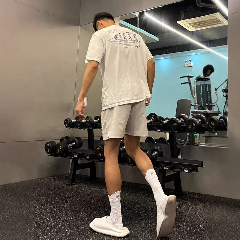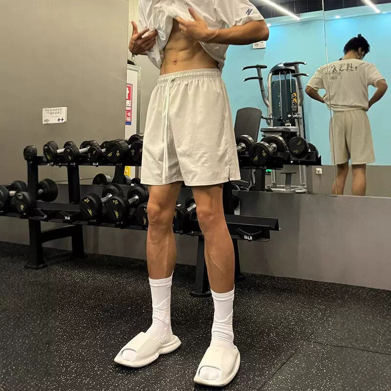 藏青色速干运动短裤男款夏季美式斜切健身裤子外穿休闲训练四分裤